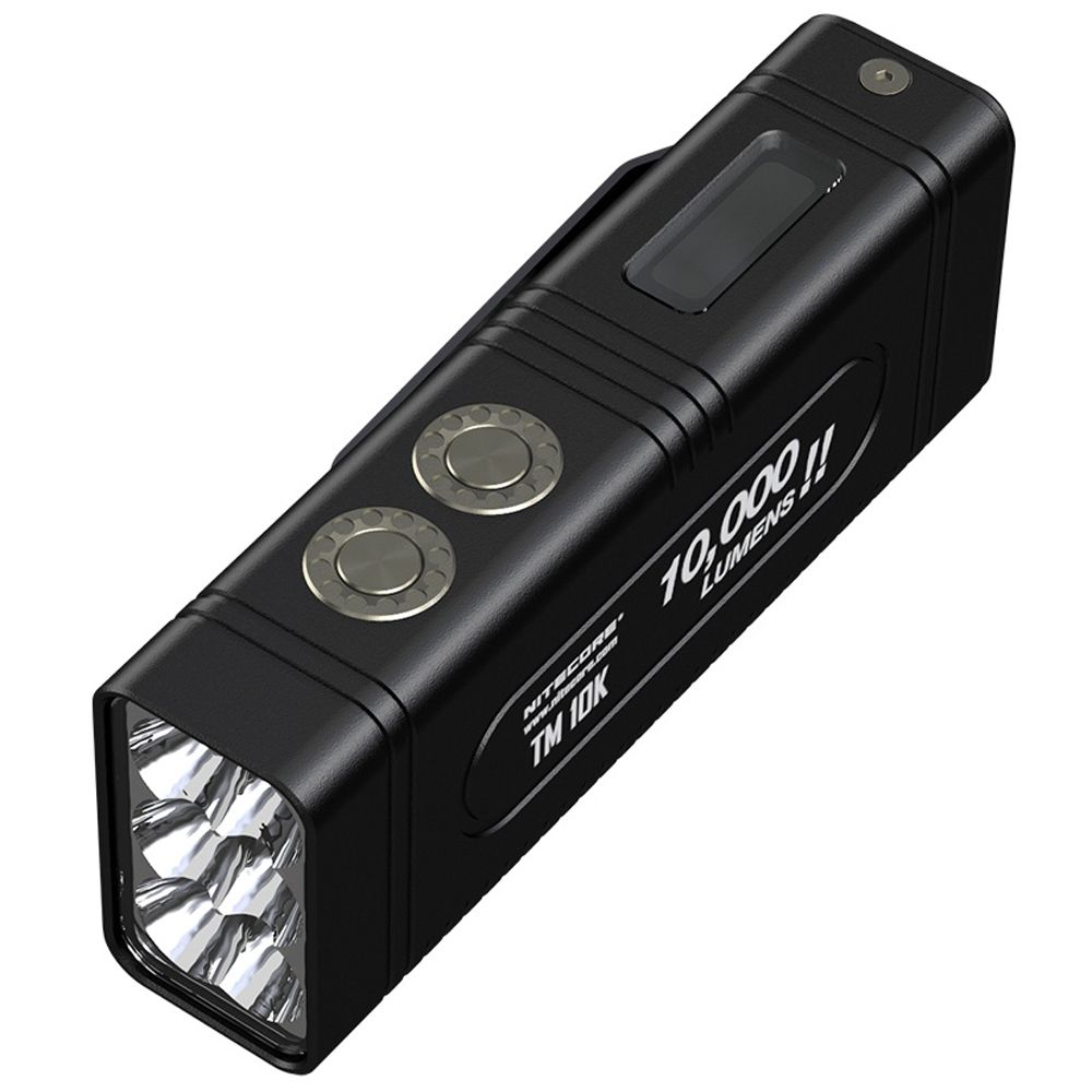 The NITECORE TM10K flashlight pushes the boundaries of LED technology with its 10,000 lumen burst mode and justifies the Tiny Monster name. Powered by six (6) CREE XHP35 HD LEDs, the TM10K offers High and Turbo outputs for intensely bright lighting that's sure to impress and Ultralow, Low and Mid outputs for up close and general lighting.