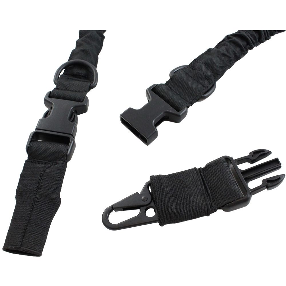 The Gear Stock Bungee Sling can be easily reconfigured as a single point, or two-point sling to suit your rifle’s needs. It features a 1.25” nylon construction with dual bungee cords to absorb shock. The HK style hooks can attach to any sling mount type and have quick-release buckles for speedy removal.