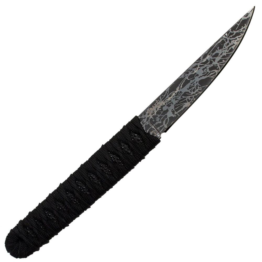 This tactically inspired everyday carry knife with a uniquely etched blade and cord wrapped ray-skin style handle is the true epitome of cool. Designed by Lucas Burnley of Albuquerque, NM, the Obake is an artful combination of a classical knife style built with modern-day materials and techniques. It’s another example of Burnley’s belief that knives are a personal expression of independence. And this one makes a statement when you bring it out for action. A throwback to a classic Japanese Kwaiken design, it features a full tang fixed blade with a unique gray titanium nitride finish that’s acid-etched to give each knife a distinct look. It’s like he made the blade exclusively for you to throw down when the need for utility comes up. The handle has a Katana style nylon cord wrap over a black faux ray-skin for an exceptional and secure all-weather grip. When storms or trouble are brewing, you’ll be ready. The sheath of the Obake™ is made from glass-reinforced nylon that provides consistent retention even in humid environments. A paracord lanyard on the sheath is designed to attach to your belt loop and keep the sheath in place when you deploy the knife. A skull bead adds a not-so-subtle accent to the paracord lanyard.