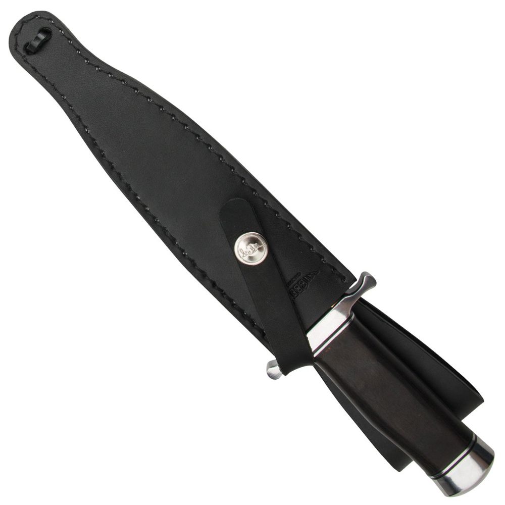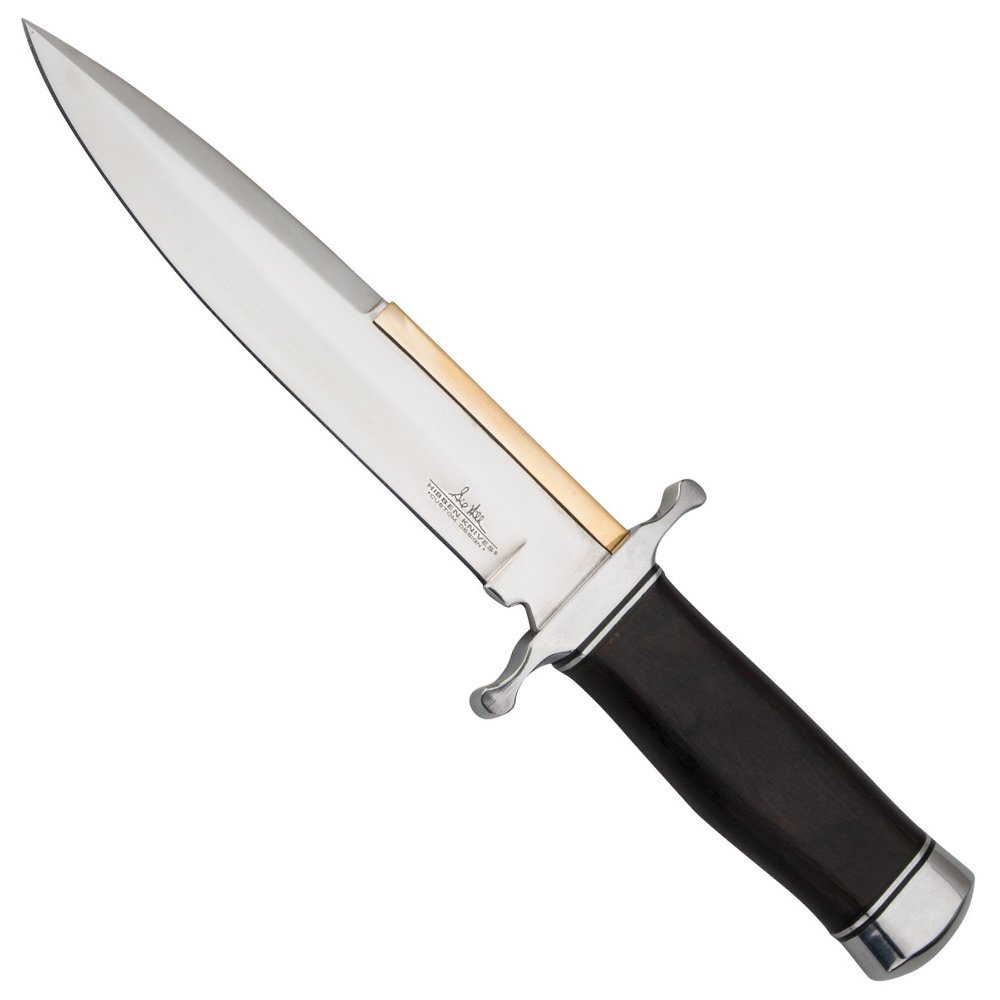 Gil Hibben reinterprets his famous Old West knife in the form of this brand new Hibben Old West Boot Knife. This fixed blade knife features a 6 1/2" high-polished 7Cr13 stainless steel blade with a brass spine plate. The attractive pakkawood handle provides an elegant finish with an Old West feel.