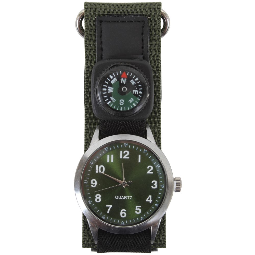 The Olive Drab Watch with Compass is a minimalistic and classy watch that comes with a hook and loop closure that is rather easy to adjust. The watch comes with a rugged nylon strap with leather highlights which also comes with a rather accurate compass for additional support. The watch features the Chinese quartz movement mechanism which ensures the highest levels of accuracy. The silver allow watch case and olive drab watch face provide just as much stylistic appeal as they do lend rigidity and toughness. The watch comes with a plastic cover and stand as well.