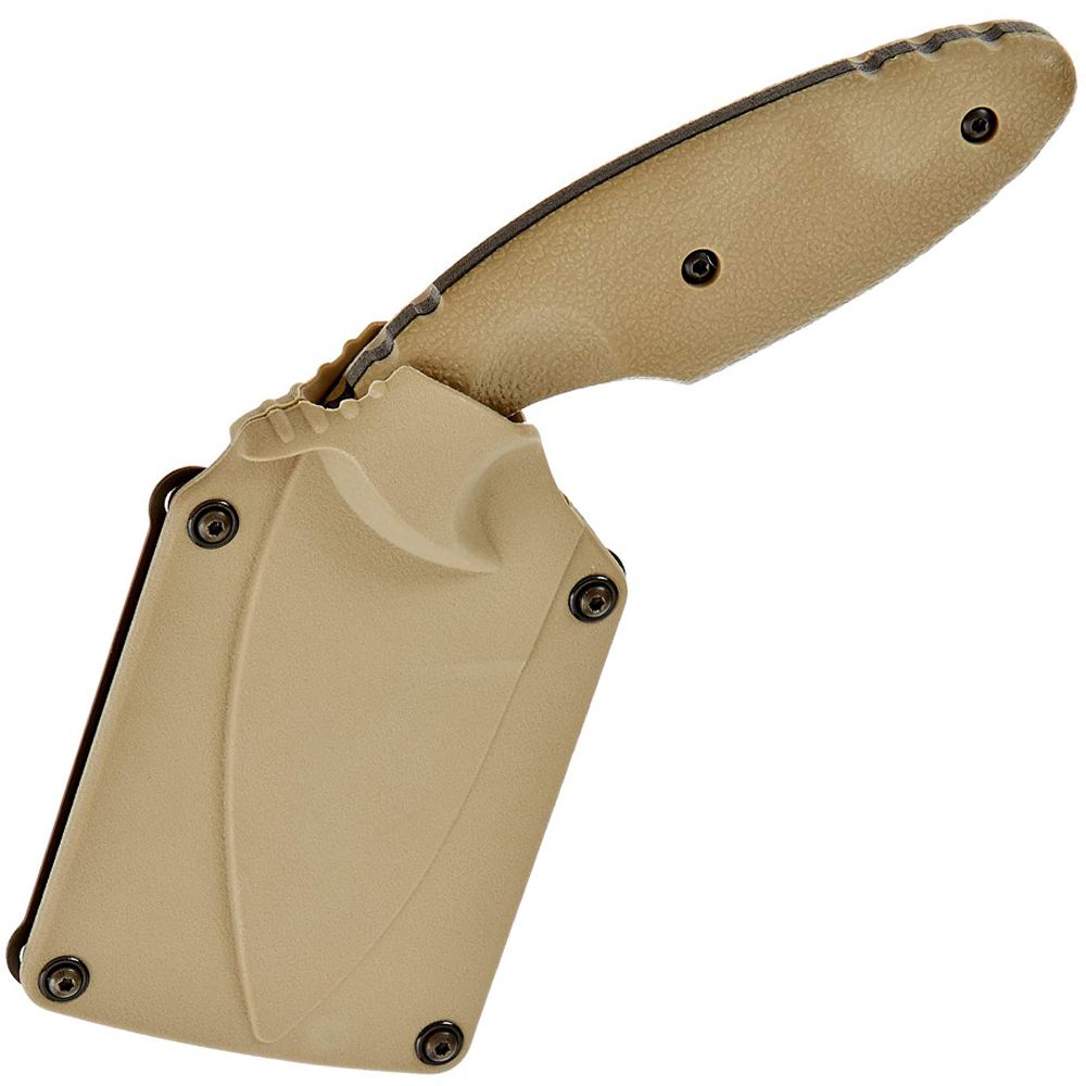 The Ka-Bar TDI is the ideal combat knife when you’re in a tight spot. Designed by Tactical Defense Institute founder John Benner, the TDI fixed blade was created for police officers who often find themselves in close quarters combat situations. It features a compact drop point blade with a curved frame that’s easy to draw and maneuver when space is limited. Forged from AUS-8 stainless steel with a full tang and black powder coating, the blade is available with a plain, half-serrated, or fully-serrated cutting edge. Textured Zytel scales and jimping along the handle provide a firm grip that won’t slip out of your hand. The TDI is perfect for concealed carry with its friction sheath and reversible metal clip that can be worn discretely inside a belt.