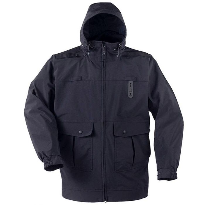 HALT barrier provides superior windproof, waterproof and breathable performanceDWR (durable water repellent) for advanced weather protectionFactory seam sealed for superior waterproof protection and insulationPROPPER Defender Echo zips into jacket as an optional linerMilitary-inspired, three-slot epauletsPROPPER exclusive Peripheral Vision Hood System (PVHS)Two front cargo pockets with snap closureTwo hand-warmer pocketsInternal chest pocketTwo chest-high microphone tabsTwo-way zipper front with cord pullCustom-molded badge tab accepts standard law enforcement badgesExtended drop tail for added rain protectionAction-fit design with articulated three-piece sleeve constructionAdjustable snaps at sleeve cuffsSide access zippers allow access to duty belt/weapon