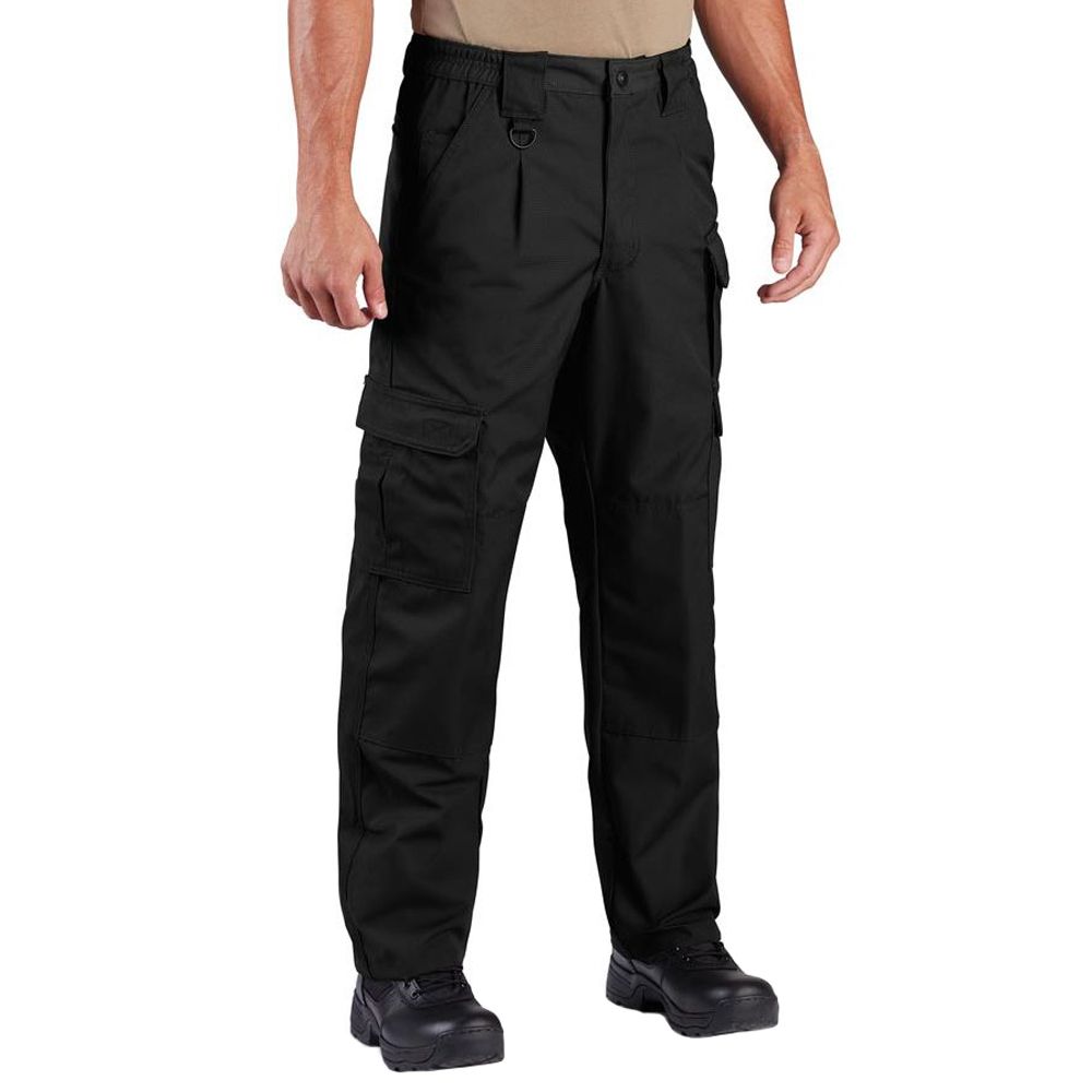 Perform with efficiency in the most demanding situations. The Propper Men’s Tactical Pant features rugged canvas fabric coated in DWR (Durable Water Repellent) fabric protector to repel stains and liquids. With nine pockets, an action-stretch waistband, extra-large belt loops for your free matching Tactical Duty Belt, you can carry your gear in comfort. The seat and knees are reinforced for extra durability, while allowing for the addition of knee pads.