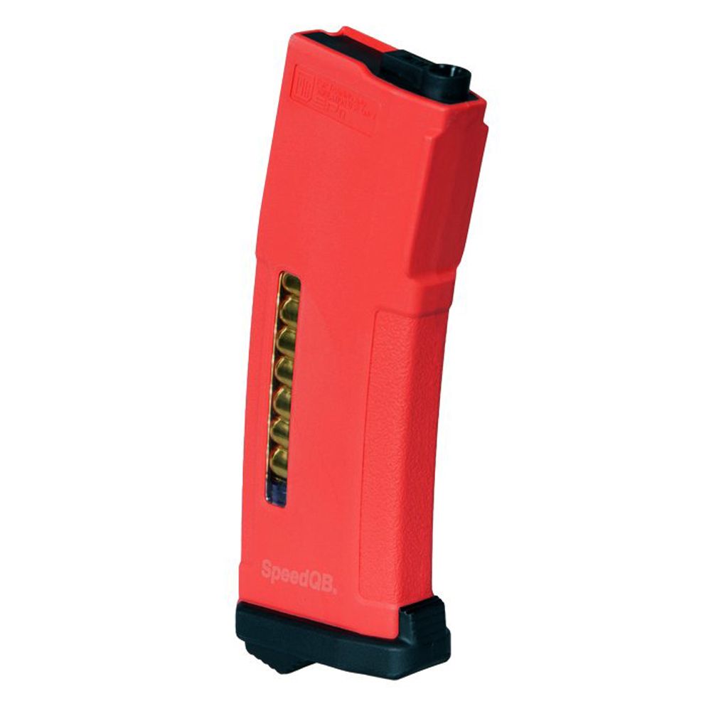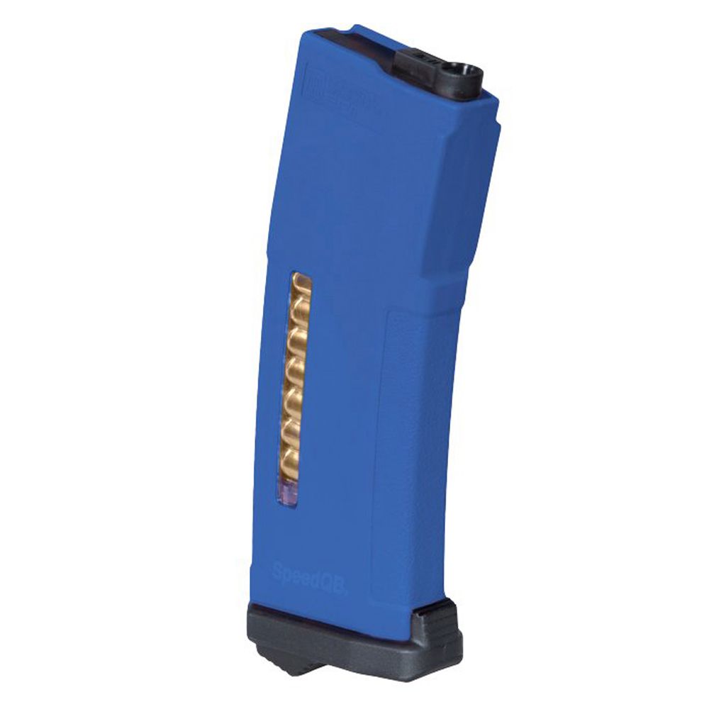 PTS and SpeedQB collaborated together to create a colourful collection of enhanced polymer airsoft magazines. These mags come in bright blue, red, and orange colourways that stand out and provide high visibility so you can easily retrieve them after milsim matches. The Dupont Zytel polymer build features textured recessed panels for better grip and magazine well guides that reduce snagging during insertion and extraction. Its see-through bullet window has an orange follower that indicates when the magazine is fully loaded at 150 rounds, maximum capacity. The magazine's floorplate is made with double-injection moulded rubber and designed with an angled surface that allows you to rest your gun on any flat shooting platform and shoot with greater stability. Compatible with Version 2 based M4 AEGs.