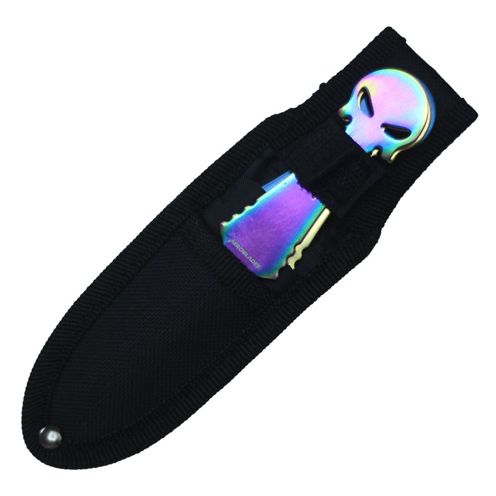Super sharp, tip point blade. Stainless Steel material creates a lifetime of target practice & endurance. As you look at the spine of the blade it features a false upper edge and drop-point profile. These high-impact throwing knives will pierce straight through an aluminum can. A middle-balanced blade, making a powerful impact with precision and speed at every throw. Attach a tassel to tune these knives to your throwing style. In addition, comes with a nylon throwing knife sheath that attaches to your belt easily ideal for outdoor adventures. Superior craftsmanship provides an ergonomic design and smooth functionality.