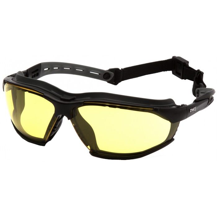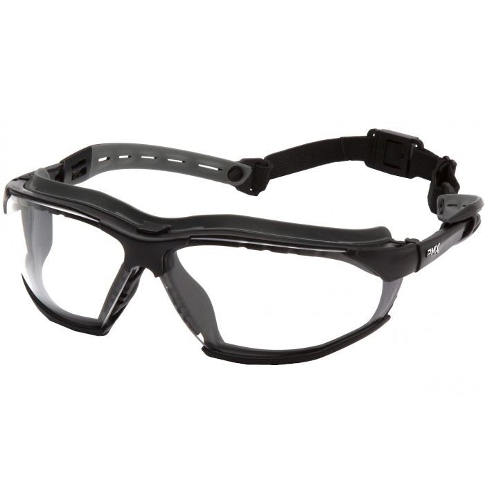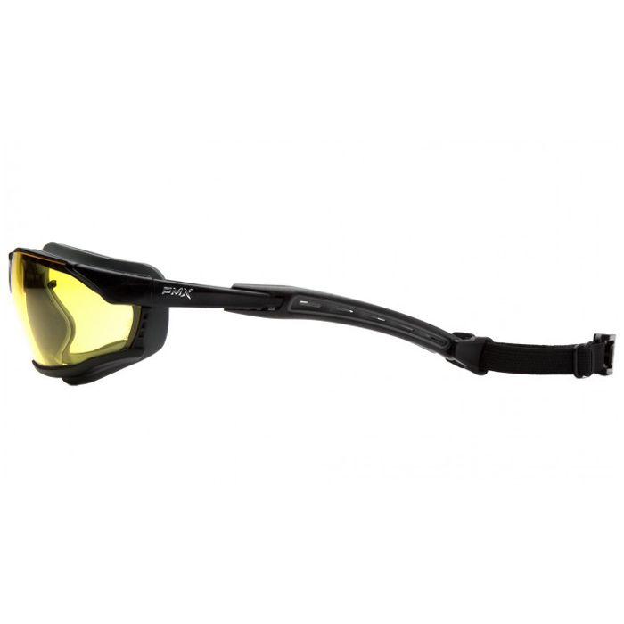 Interchangeable temples and neoprene strap. Temples adjust to three different lengths. Wrap-around lens provides excellent side protection. Dual frame design features a rubber gasket for a comfortable fit while protecting from splash and dust. Rubber gasket forms a trough that channels liquids away from the face.