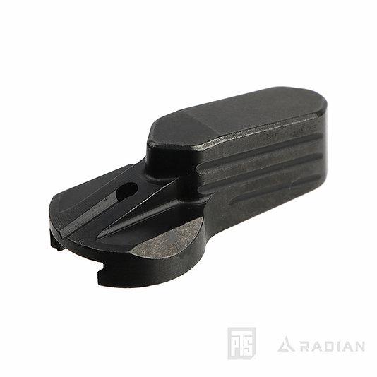 The PTS Radian Talon™ Ambidextrous Selector GBB is an ambidextrous safety selector made from high strength steel alloy for the Tokyo Marui MWS Gas Blowback M4 system. Selector levers install using a precision machined dovetail interface with spring-loaded retention stud to lock the lever in place – no screws to come loose or break. The kit comes with a short and long lever that you can optimize for left or right hand shooters