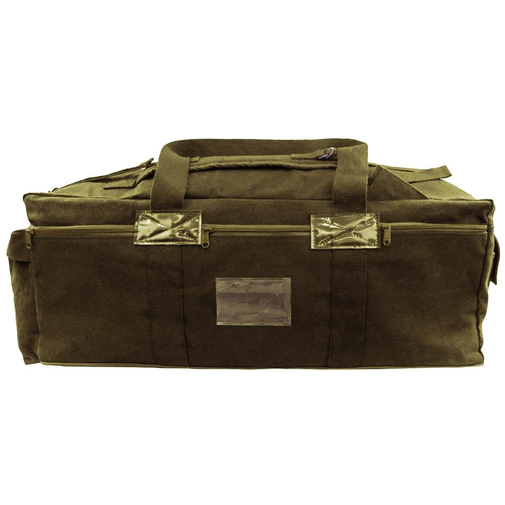 This Raven X extra-large tactical bag functions as both a duffle and backpack. Constructed from rugged heavyweight canvas with a waterproof PVC bottom, it provides reliable protection in even the most grueling environments. In addition to the spacious main compartment, the exterior of the bag is equipped with an ID holder, three single-zipper document pockets, and three utility pockets for fast-access to often used equipment. It has multiple carry options with adjustable padded shoulder straps as well as extra-long reinforced carry handles.