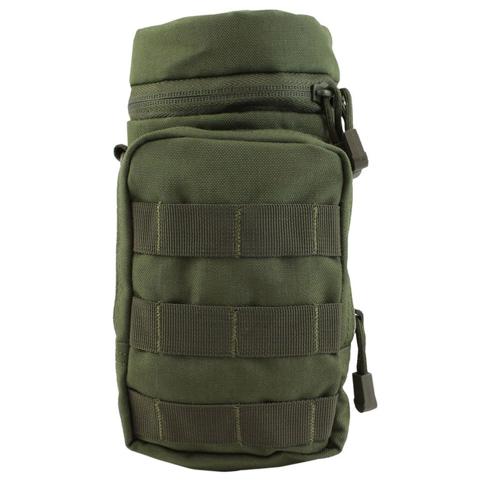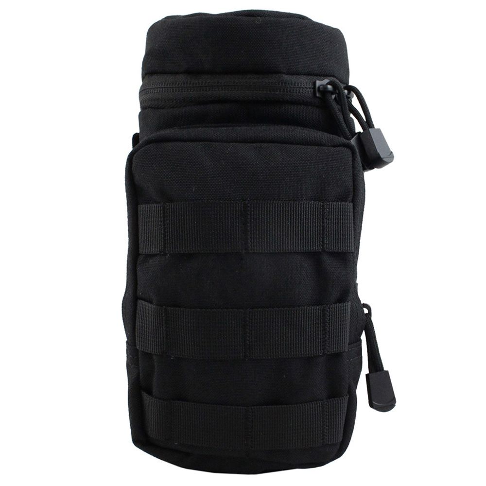 The Raven X Hydration Bottle Pouch can fit most standard water bottles or hydration bladders up to 1.5L in size. There is a small utility pouch at the front as well as MOLLE webbing along the entire exterior to attach supplementary pouches. Attach it to any other MOLLE compatible gear with the PALS back straps or use the D-rings to attach a sling for shoulder carry. A hook and loop pass-thru on the cover allows you to run a hydration hose into the main compartment. This tactical black model is primed for covert operation.