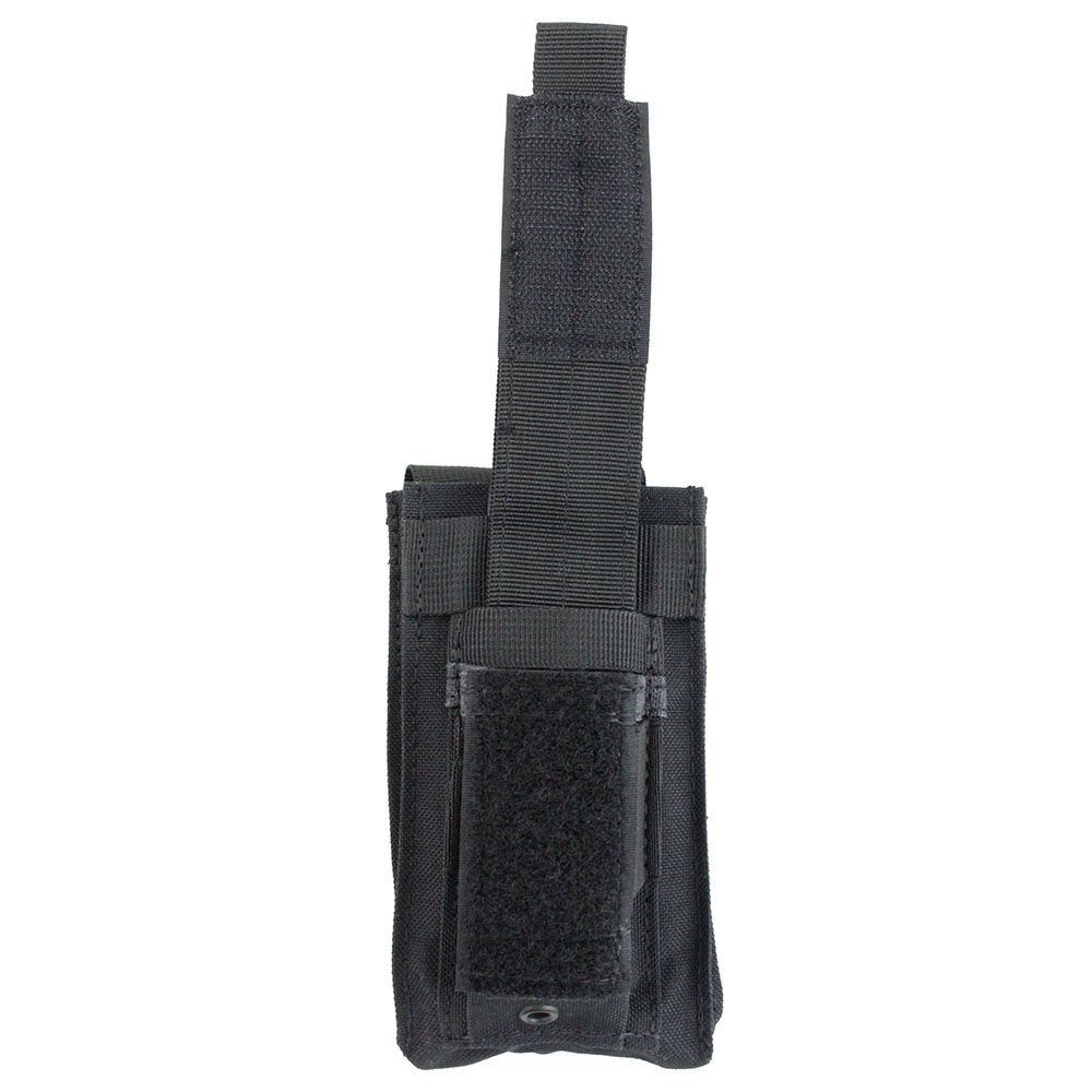 This unique kangaroo style Raven X pouch is designed to hold an M4/M16 magazine and a pistol magazine in a space efficient stack. The rifle mag pocket has a convenient open top design, while the pistol mag pocket has an adjustable hook and loop cover. This pouch is also equipped with drainage grommets and PALS back straps to mount on MOLLE compatible gear.