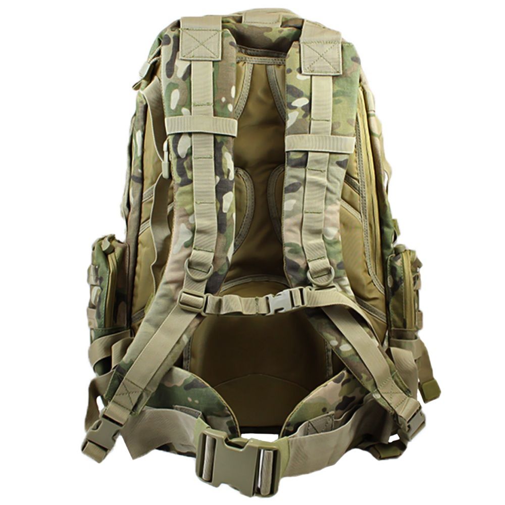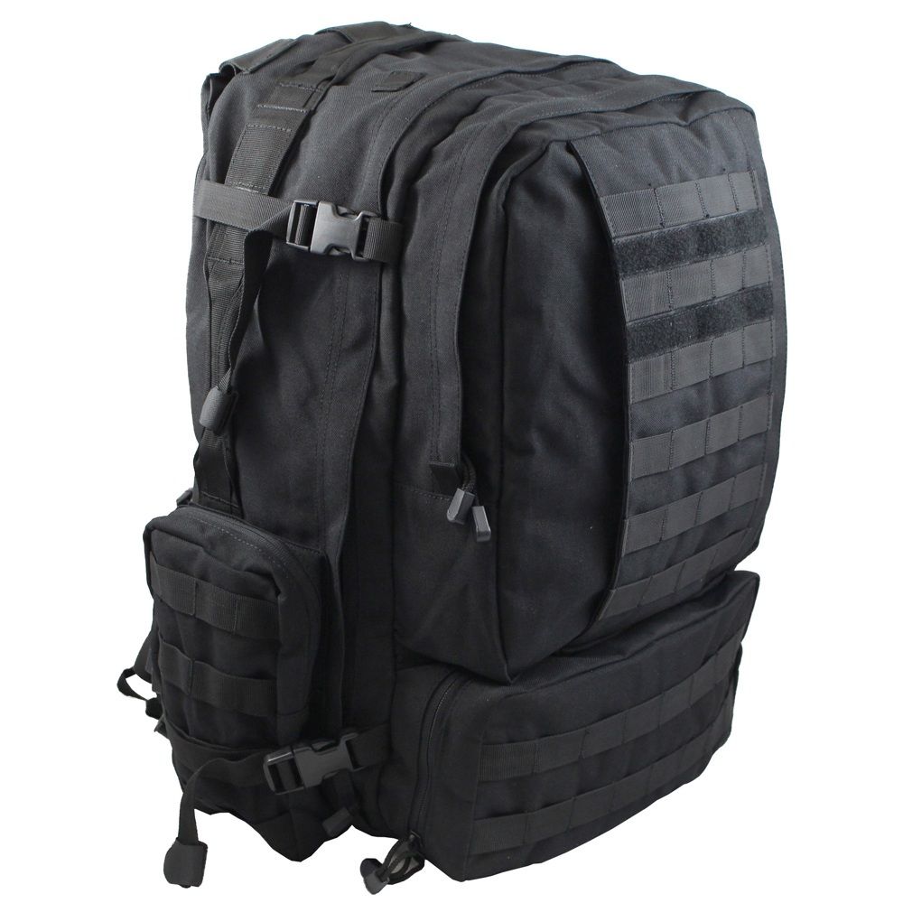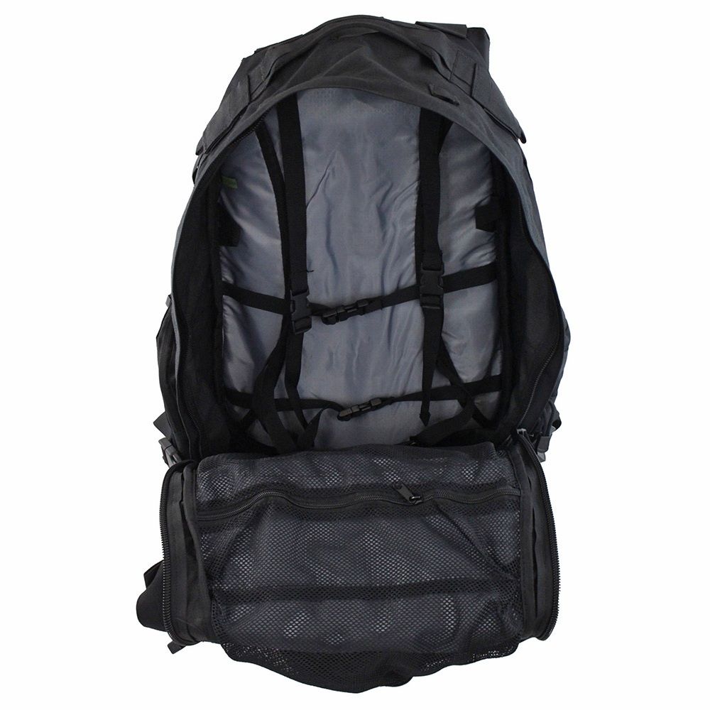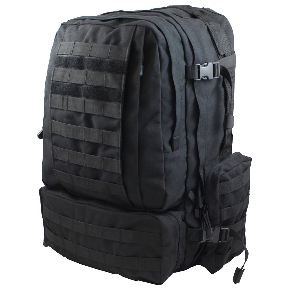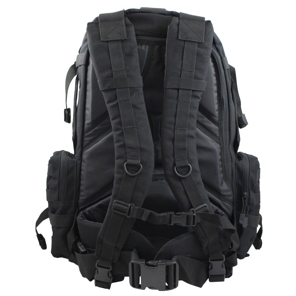 Be ready for your next weekend adventure with the Raven X Large Assault Backpack. This large tactical pack features a spacious inner compartment and multiple front and side pockets for keeping smaller items secure. Inside there are two zipper mesh pockets and straps with quick release buckles to hold your gear in place during transport. The back compartment is built to accomodate up to two 3L hydration bladders and hoses. MOLLE webbing on the front and sides allows for direct attachment of other tactical gear. The fully adjustable shoulder, waist, and sternum straps are padded with body contoured cushions for extra support and comfort. Overall dimensions are 22" x 17" x 11", 3038 in³.