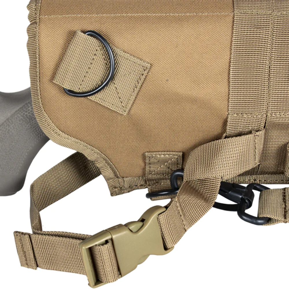 Keep your shotgun locked, loaded, and by your side with this Raven X shotgun scabbard. This tactical rig can be carried over the shoulder or mounted on MOLLE compatible gear. With a 29-inch padded compartment and adjustable retention strap, it will fit almost any shotgun model. The scabbard’s exterior is lined with MOLLE webbing so shell carrier pouches can be attached.