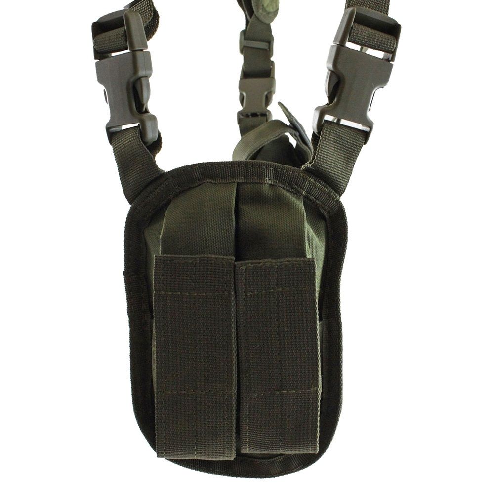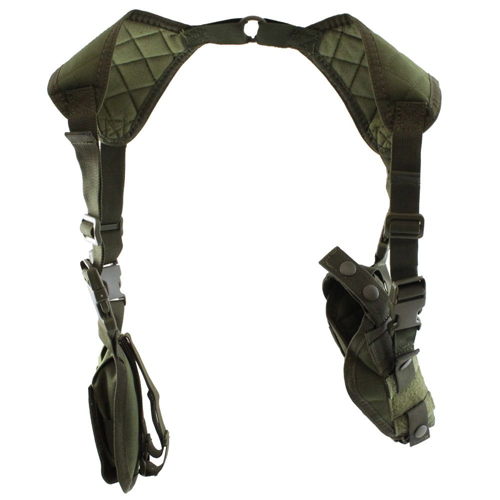 Your pistol is always by your side with the Raven X Shoulder Holster. This rig has padded shoulder straps and can hold two spare magazines and any medium - large sized pistol. The fit is easy to customize with adjustable straps and quick detach buckles to switch your setup for left or right hand carry. This model features a vertical holster that holds your pistol tight against the side of your body.
