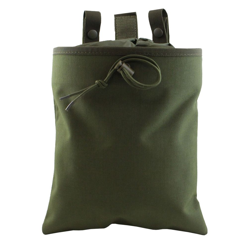 This Raven X Dump Pouch packs a lot of storage in a small amount of space. It folds up tight with a hook and loop tab when not in use, then unfurls into a massive utility bag to store spent magazine, loose ammo, and assorted gear. It can be fastened to pistol belts or MOLLE bags and vests using the two button clasps. This tactical black model is covert and low-profile.
