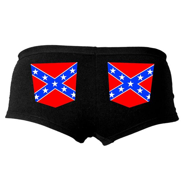 Ladies Biker Boy Shorts are screen printed with two rebel flag fake pockets. Boy shorts can not be returned or exchanged.