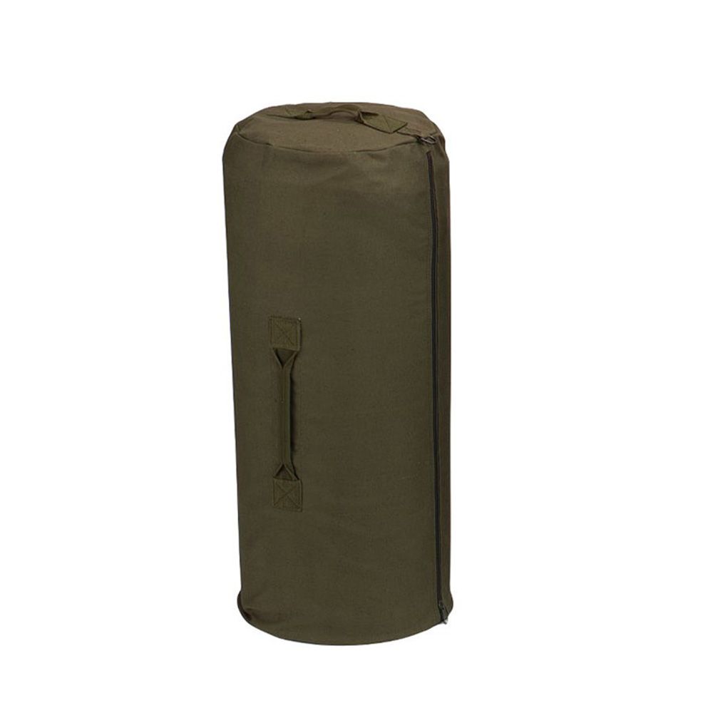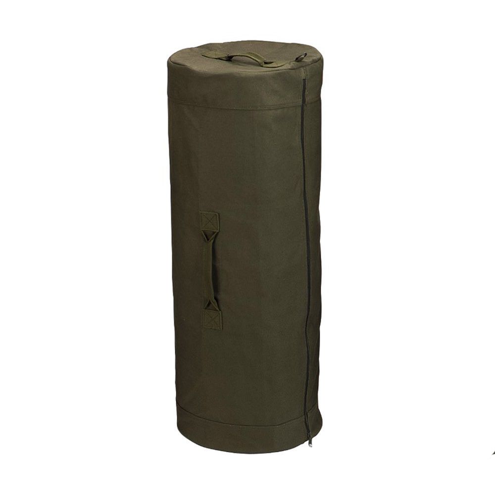 This duffle bag is specially designed in heavy weight cotton canvas material. It is jumbo sized and can hold all your things when you travel in outdoors or when you go for camping. The zippers move on both the sides, up and down on both directions. This bag is double stitched and thus long lasting. It has very strong top and side grab handles. It also comes with D-rings. This bag is well constructed and light in weight. It has a decent look and good finish. This jumbo size duffle bag is available at inexpensive prices.
