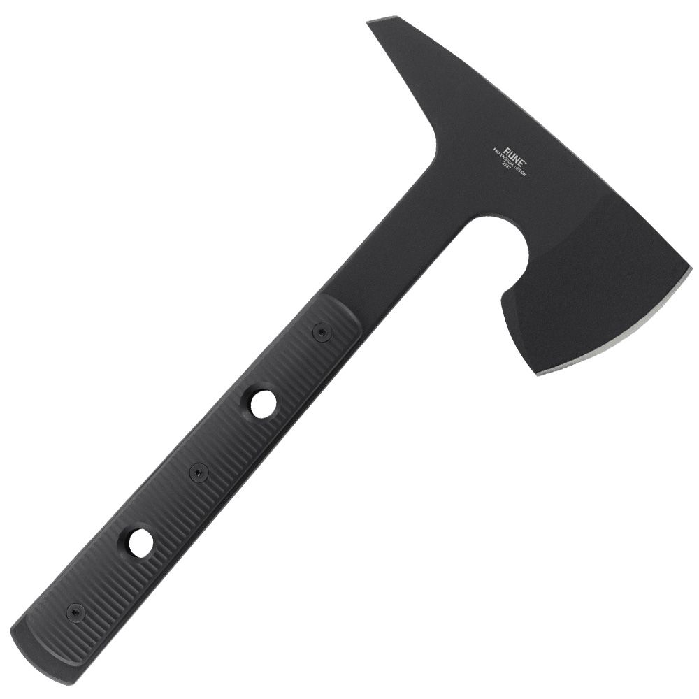 The Rune is a tactical axe modeled after old Nordic weaponry, and it feels most at home on a SWAT vest. It’s remarkably lightweight, and what it lacks in bulk, it makes up for in versatility. When going headlong into a dicey situation, the Rune™ will lead the way. Ryan Johnson of RMJ Tactical applied his 30 years of tomahawk design prowess to come up with the Rune in his Chattanooga, Tennessee shop. It’s infused with the practicality of a mean SWAT tactical tool, and wrapped in ancient Nordic design. The head features a utility spike and a notch for choking up. It’s finished with a black powder coating for corrosion resistance. To ensure exceptional grip, the handle is made with glass-reinforced nylon and has two lashing points for carrying versatility. The MOLLE compatible sheath features a buckle strap that elevates utility. When you find yourself face-to-face with trouble, the Rune has got your back.