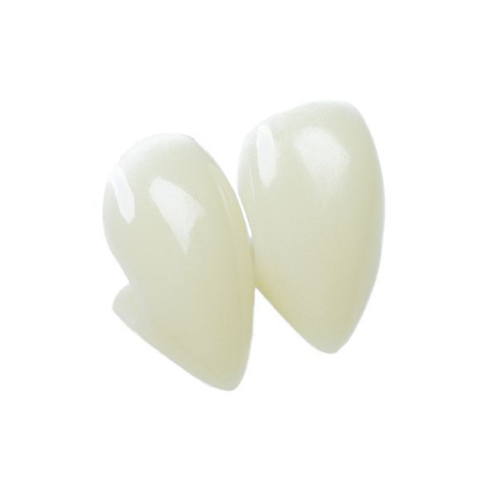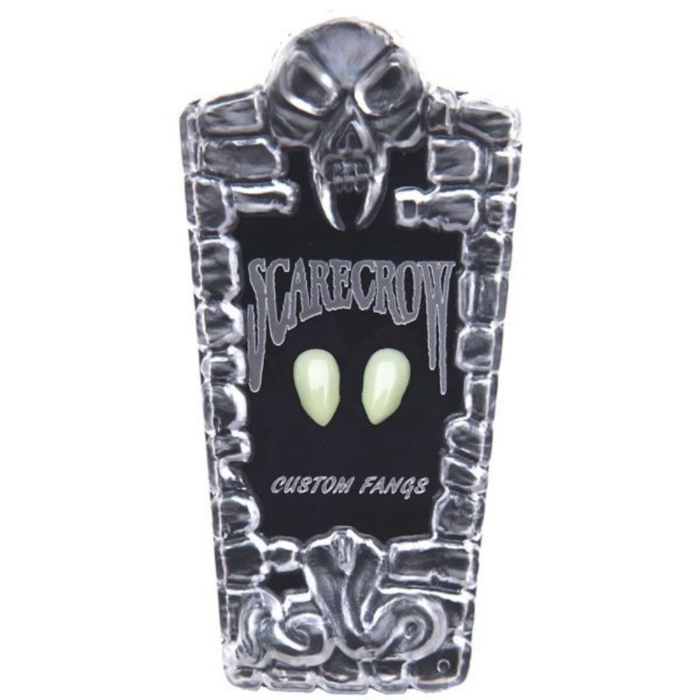 The Original Scarecrow Vampire Fangs - "Classic Deluxe Custom Fangs" are designed for people with average to larger teeth. They may fit either canines and/or incisors or bottom teeth. Fast, easy, comfortable, and totally realistic. Natural color fang caps are shiny, rigid, and beautifully contoured to look great in any mouth.