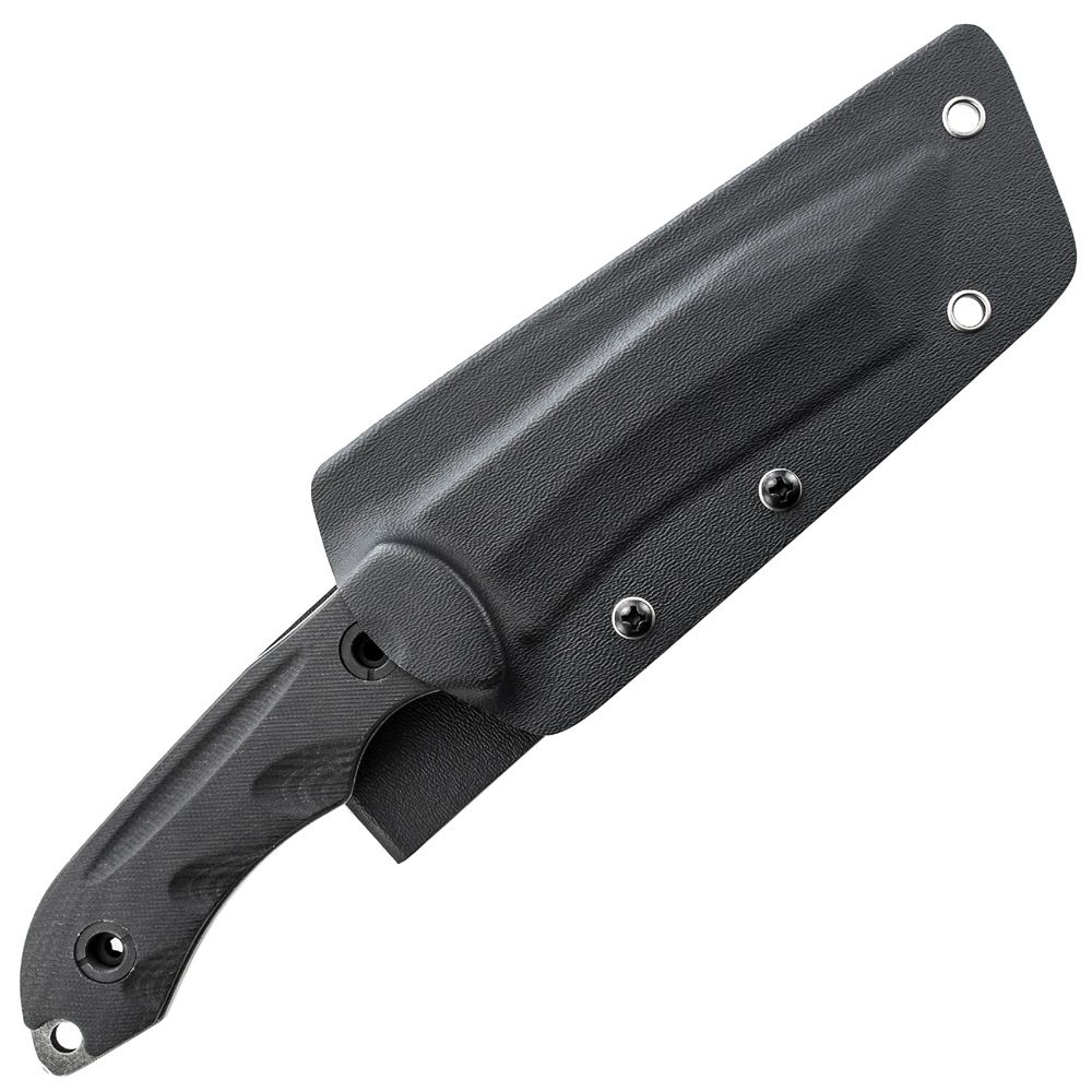 This Schrade F12 tactical fixed blade knife features a thick 4.9" 8Cr13MoV high carbon stainless steel full-tang blade and textured G-10 handle scales with finger grooves for improved grip. The thermoplastic sheath is very sturdy and comes with a belt attachment loop that can be attached to multiple carry positions.