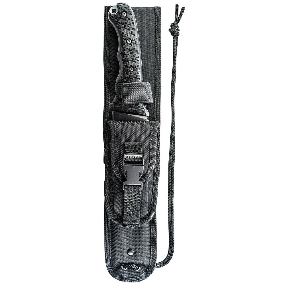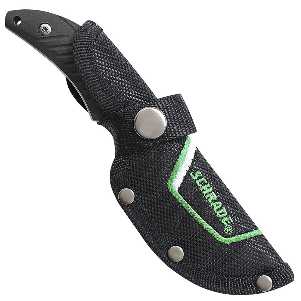 Schrade Full Tang Fixed Blade Knife, 7Cr17MoV High Carbon Stainless Steel Drop Point Blade with Thumb Rest Jimping, TPR Handle Slabs with Lanyard Hole, Black Polyester Belt Sheath.