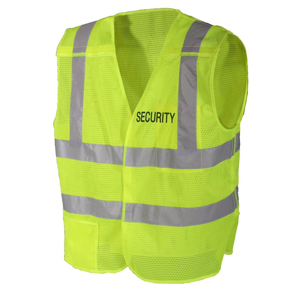 Security 5-point Breakaway Safety Vest is designed with hook and loop closures along the front, sides, and shoulders ensuring the safety vest will tear from the wearer if the hi-vis vest is caught on something. A 2-inch wide reflective tap covers the chest, waist, and shoulder for high visibility. The reflective vest is made of a 100% polyester is available in two sizes, Regular and Oversized.