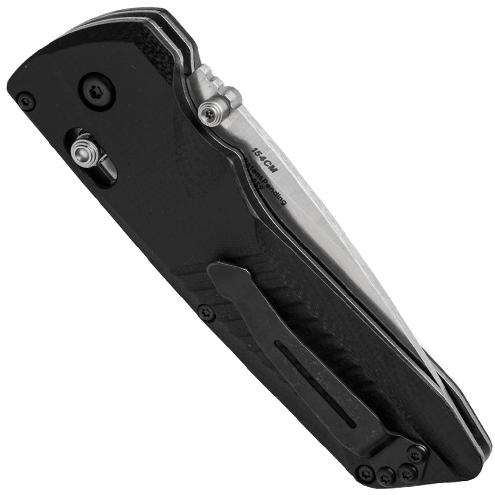 The Serum is a versatile setup with the comfortably milled G-10 handle, modified drop point blade and ambidextrous AXIS Dual-Action mechanism. The AXIS Dual-Action mechanism functions like a regular AXIS lock for manual operation, but when the AXIS bar is fully pulled back the automatic mechanism deploys the blade. Benchmade has equipped the knife with a secondary safety system to eliminate "dry fire," which occurs when a blade isn't fully closed.