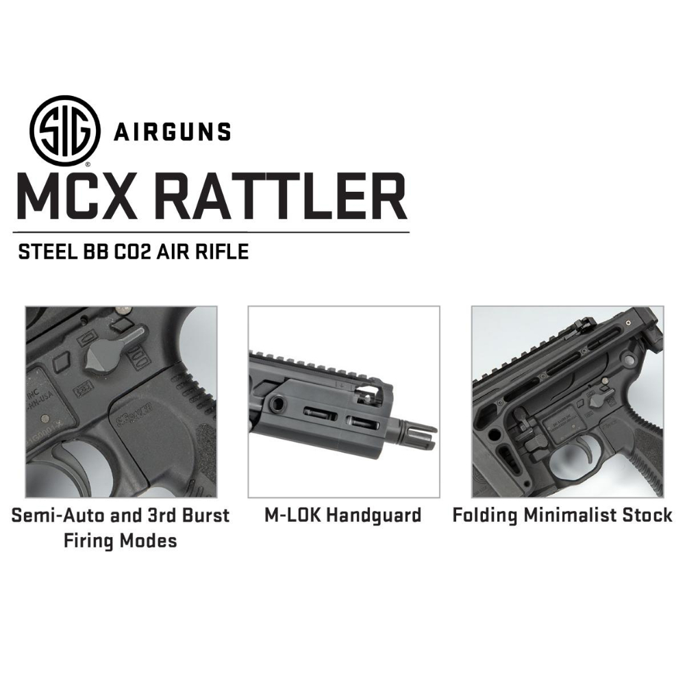 The new SIG Rattler BB Gun is the first BB-firing “long gun” to be offered by SIG SAUER. The company offers both pellet- and BB-firing CO2-powered pistols, so it’s logical to see this development in the long gun range. The move to BB-firing allows a number of changes compared to the existing, pellet-firing Rattler Canebrake model. These include 3-shot auto burst capability, folding stock, and field strip capability. The downside is lower power and a lesser shot count per fill of CO2.