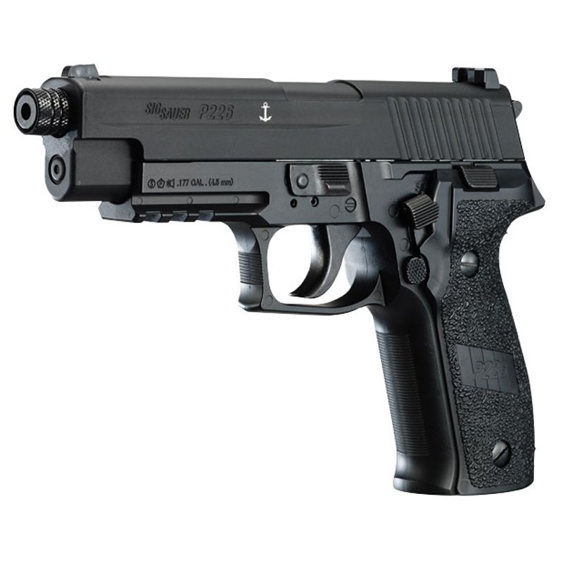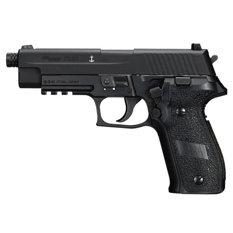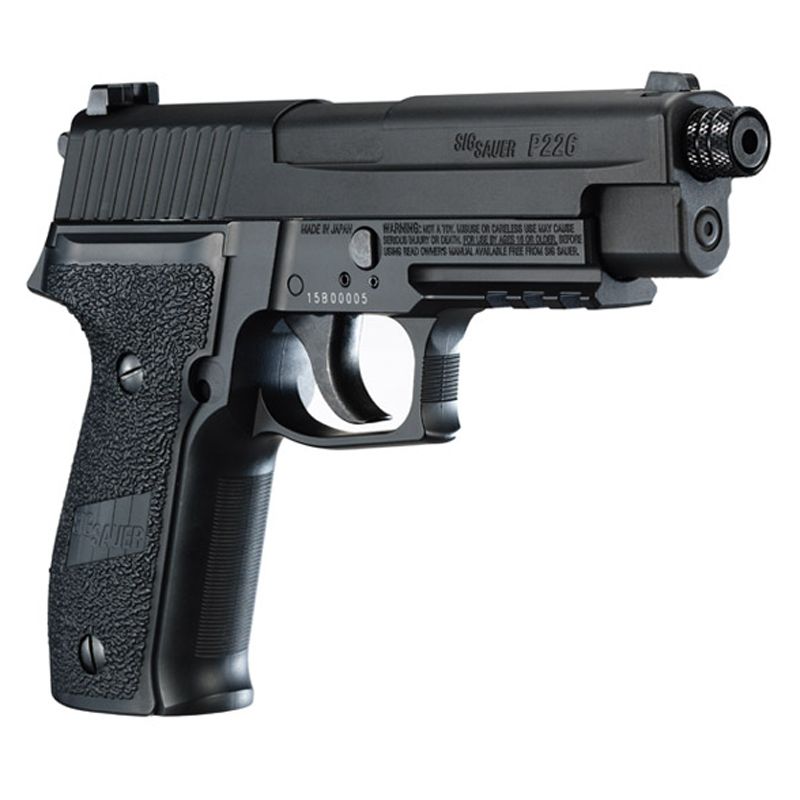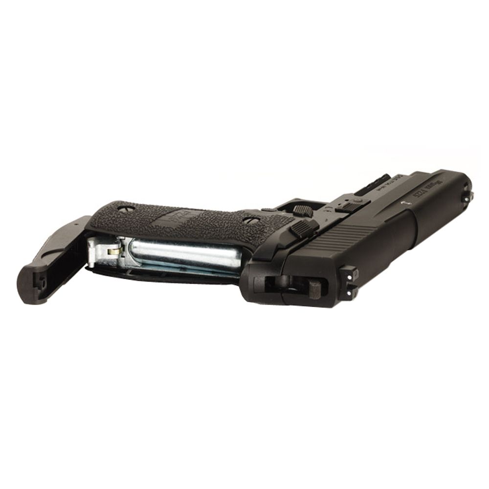 This air pistol replica features a metal slide and polymer frame that feels very sturdy in hand. A reversible 16 round rotary pellet magazine lets you keep the shots coming down its rifled barrel. This Sig even includes a Picatinny rail for mounting up your choice of flashlights or lasers. Each features a responsive blowback action to make your shooting sessions that much more realistic.