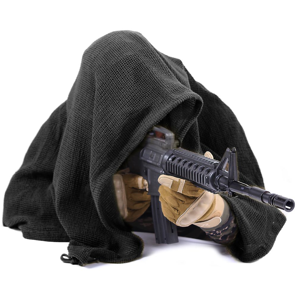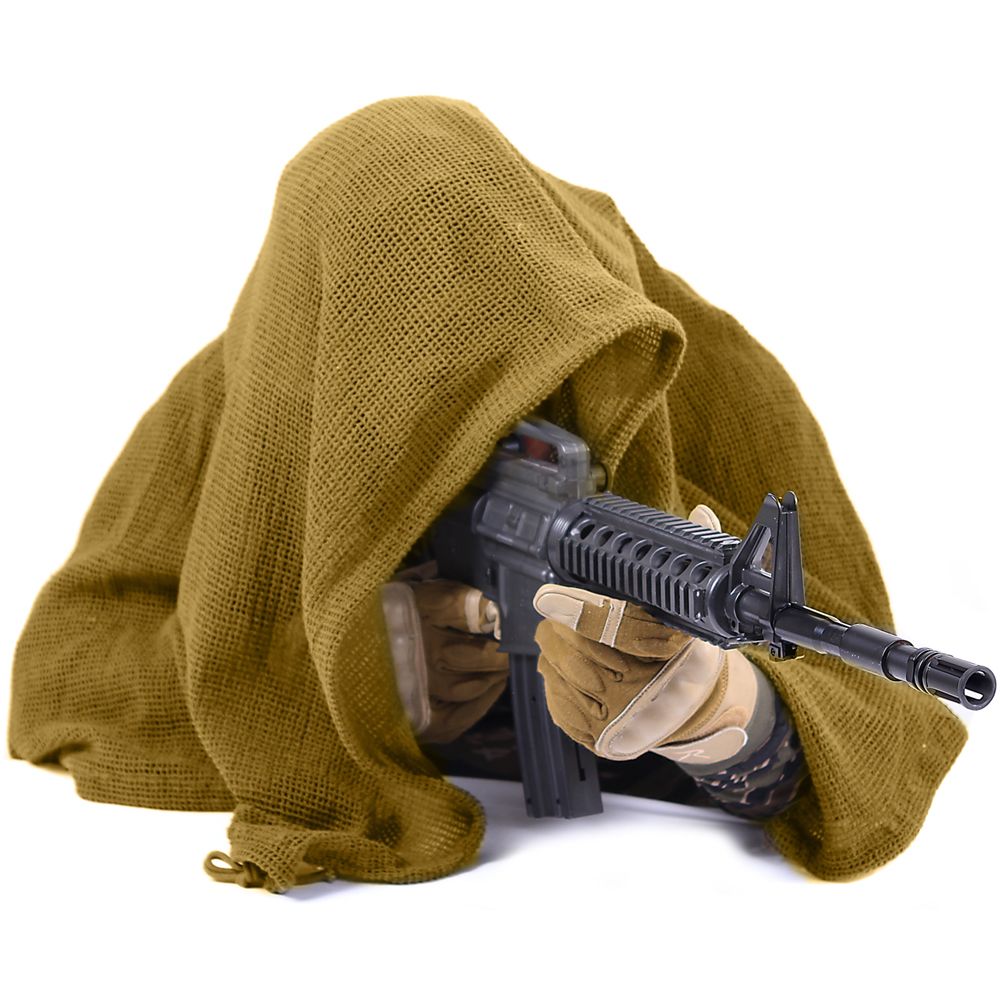 The Sniper Veil is a versatile tool for concealment and protection in tactical environments. With a generous size of 36"x46", this veil is designed to effectively camouflage both the user and their weapon. The all-around cinch cord and corner loops allow secure attachment to your gear or even suspension as a gear hammock. Crafted from 100% breathable cotton, it doubles as a shemagh or scarf for added defense against wind, dust, and sun.