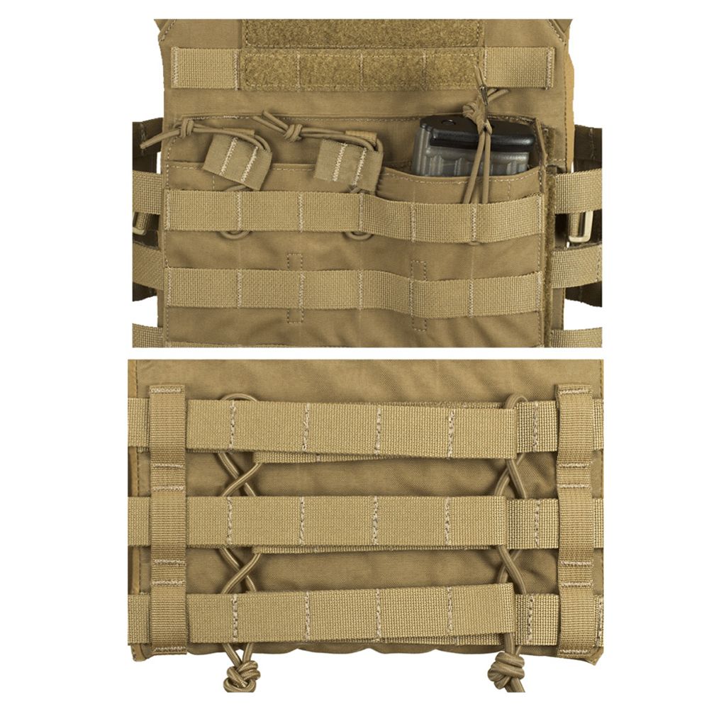 - Built-in admin pouch in upper portion of front carrier (holds pistol mags, chem lights, maps).