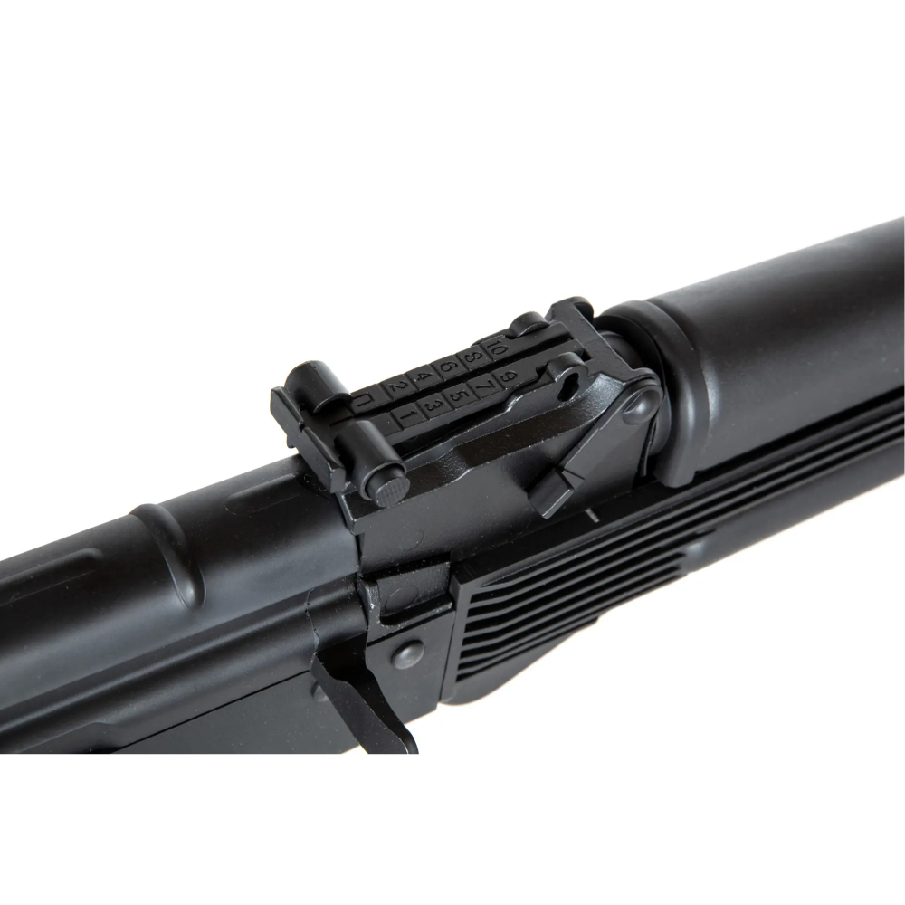 Specna Arms J-Series ™ CORE ™ carbine replicas are made primarily out of durable polymer reinforced with nylon fiber, making the replica lightweight and comfortable to use. The pistol grip, the receiver with the handguard with the gas tube overlay, the gas tube, the gas elbow, and the front sight are made of polymer.