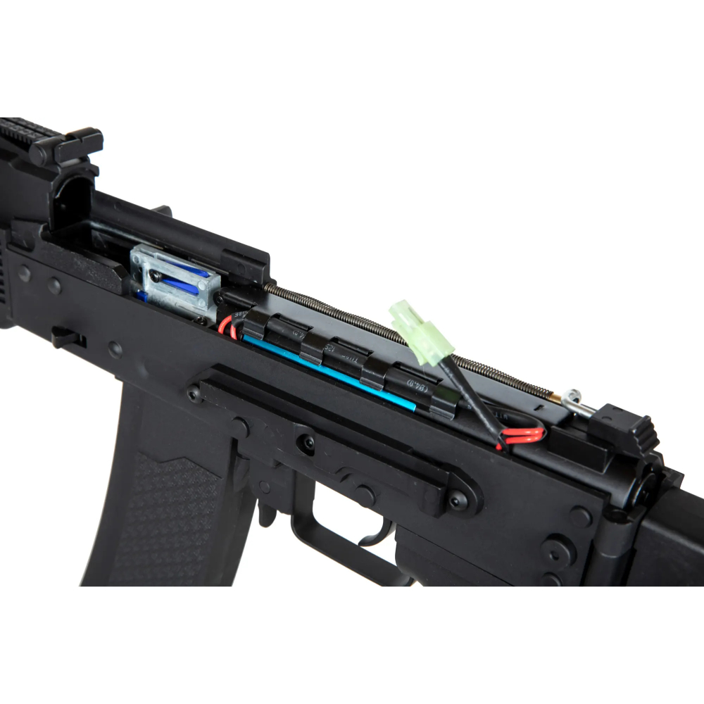 Specna Arms J-Series ™ CORE ™ features a very good fit of the parts, low weight, and ergonomics. In addition, the replica comes equipped with the ESA2™ quick spring change system. The system allows you to adjust the power of the replica without the necessity to disassemble the replica. To replace the spring, you just need to remove the dust cover, fold the stock and unscrew the screw holding the spring guide.