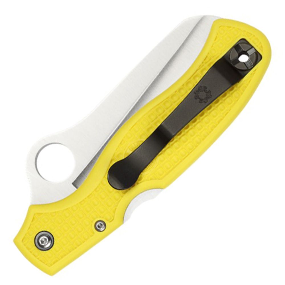 Spyderco's Rescue knives are long favored by seafarers and the design has since been embraced by rescue workers, EMT's and ranchers-anyone cutting around flesh in an emergency. Now available in a rustproof version, the Atlantic Salt is a modified Rescue made with state of the art non-rusting H1 steel. The hollow-ground blade is available in SpyderEdge offering remarkable cutting performance in and around fresh and saltwater. The molded FRN handle includes a shackle key and is available in black or bright yellow and features a reversible black-coated titanium pocket clip for tip-up carry on either the left or right side. We recommend threading a thong or lanyard cord through the lanyard hole for back-up retention around water, where once dropped, a knife is often irretrievable or lost.