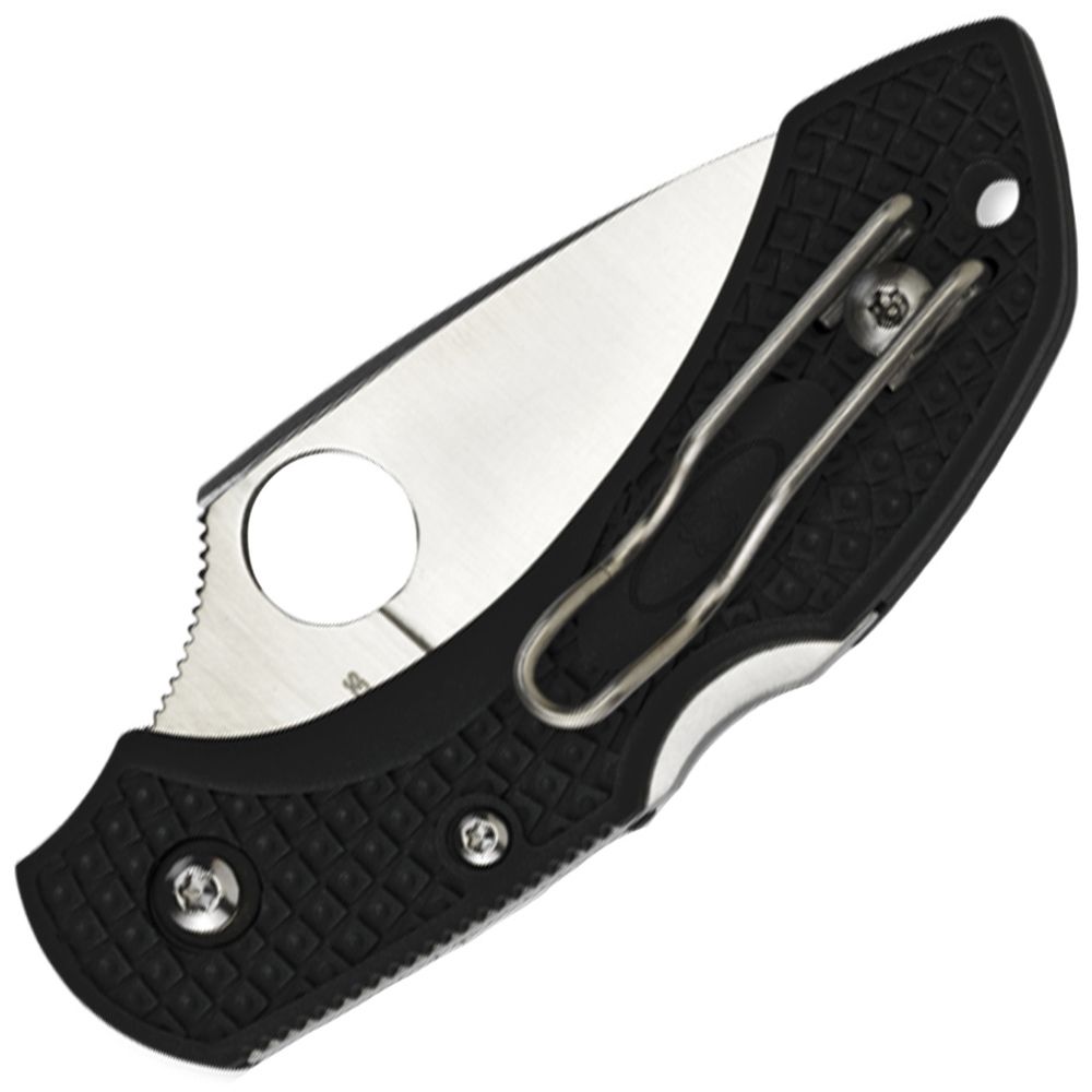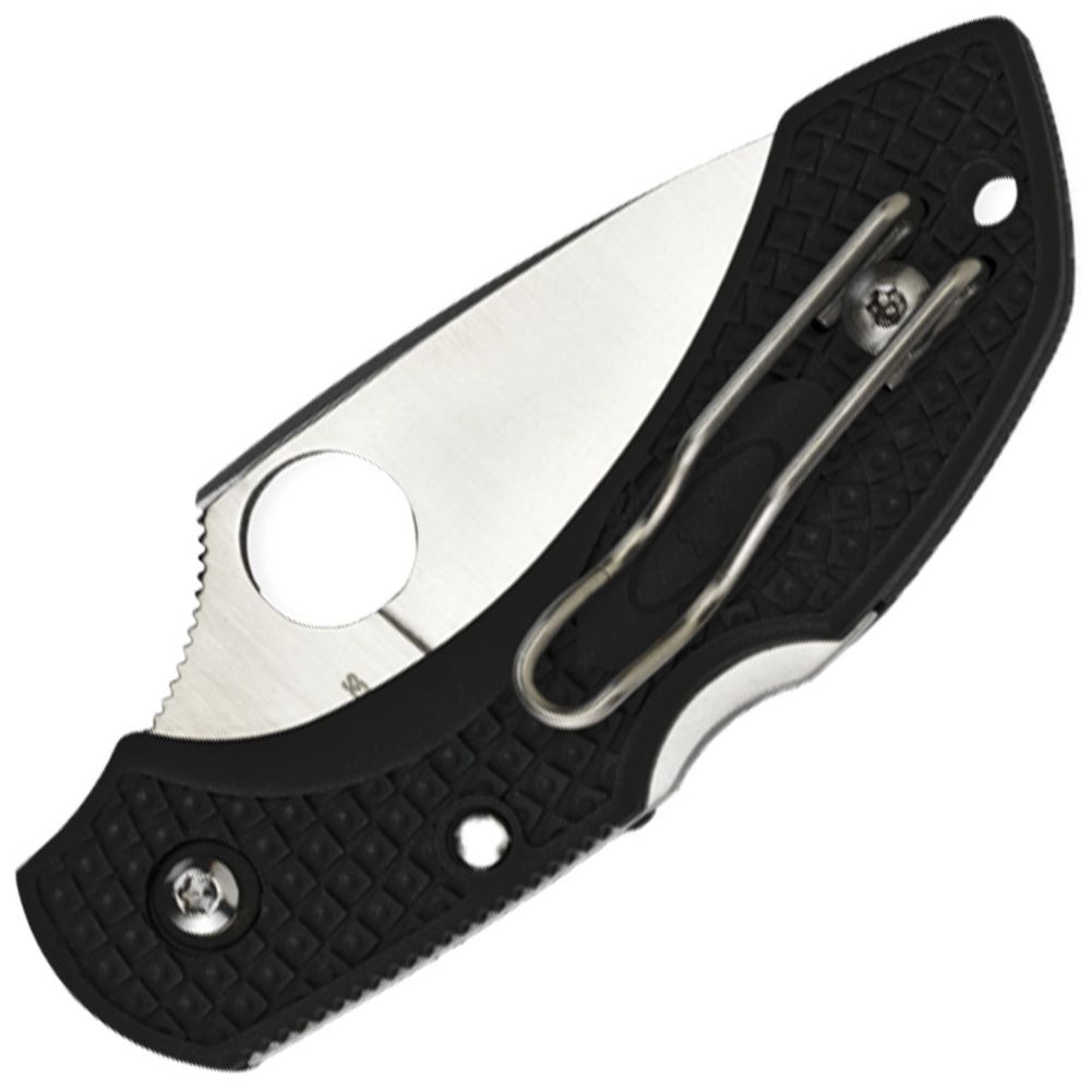 The position of the enlarged Spyderco Round Opening Hole in relation to the pivot leads to smooth opening and the FRN (fiberglass reinforced nylon) handle fits the hand ergonomically with a series of grip angles and leveraging spots.