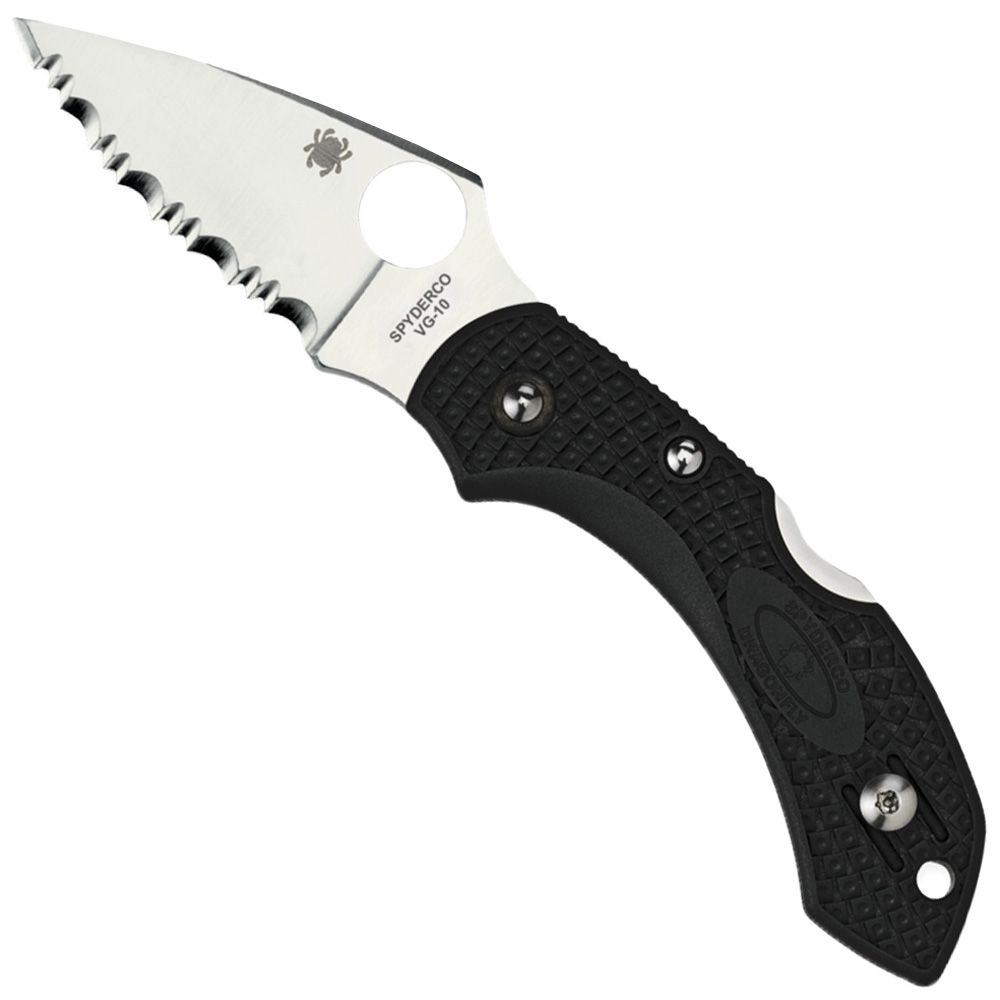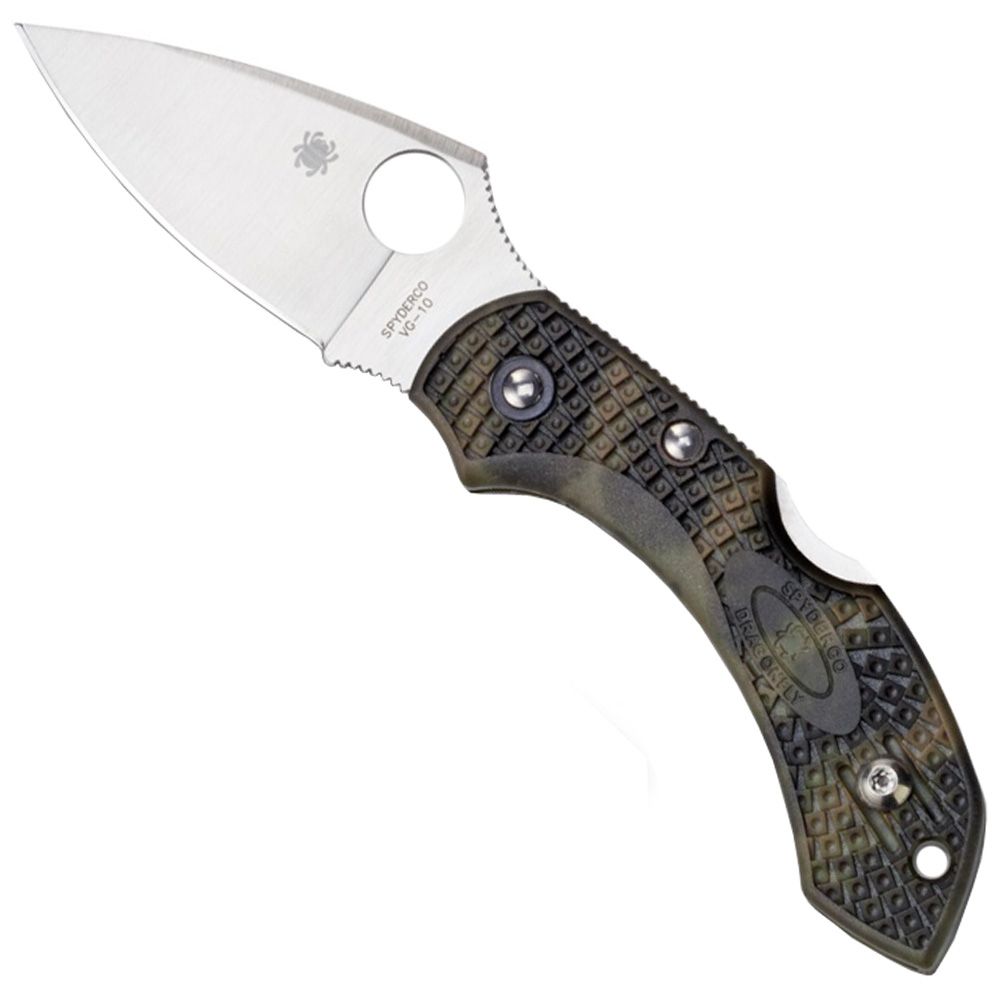 New refinements include: the addition of a left/right tip-up wire clip, patented Bi-Directional Texturing' on the handle, choil and spine jimping and screw-together handle construction. The blade is still premium VG-10, now in a high-performance flat-grind with a Plain Edge or Spyder Edge.