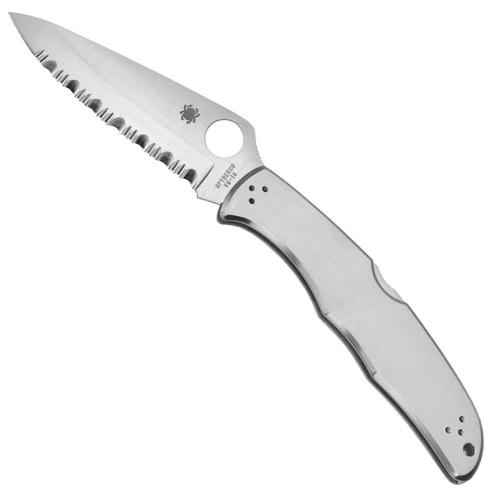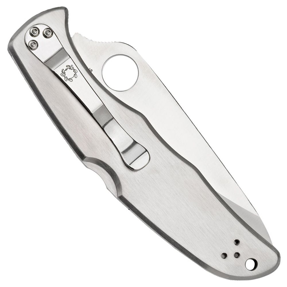 Introducing the new stainless Endura 4, it fills your palm with a handful of steel yet doesn't seem weighty or unwieldy. Knife Knuts who prefer something heavier and stouter seem to gravitate to steel handled knives. Since the handle surface is flat and smooth it offers an ideal palette for engraving and personalizing your knife, and Cutlery Shoppe offers an excellent engraving service - just call or e-mail us for details. As part of Spyderco's CQI (Constant Quality Improvement) philosophy the C10 now offers improved ergonomics added to the blade's spine is slip resistant jimping, a larger thumbhole, a stronger thicker tip and a new 4-way clip design (R/L reversible and Tip-up/Tip-down). The hollow-ground blade has been upgraded to VG-10 and is available in a PlainEdge, SpyderEdge or ComboEdge configuration.
