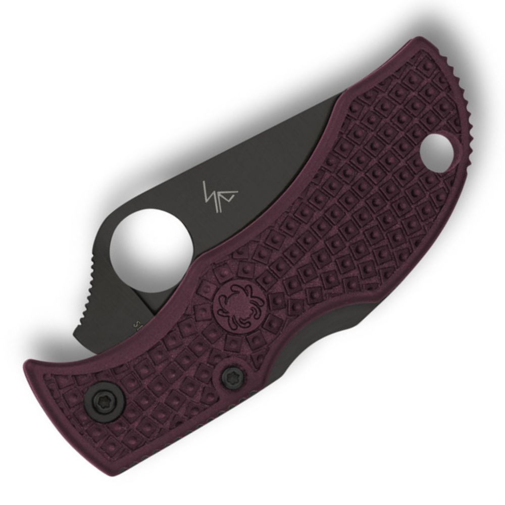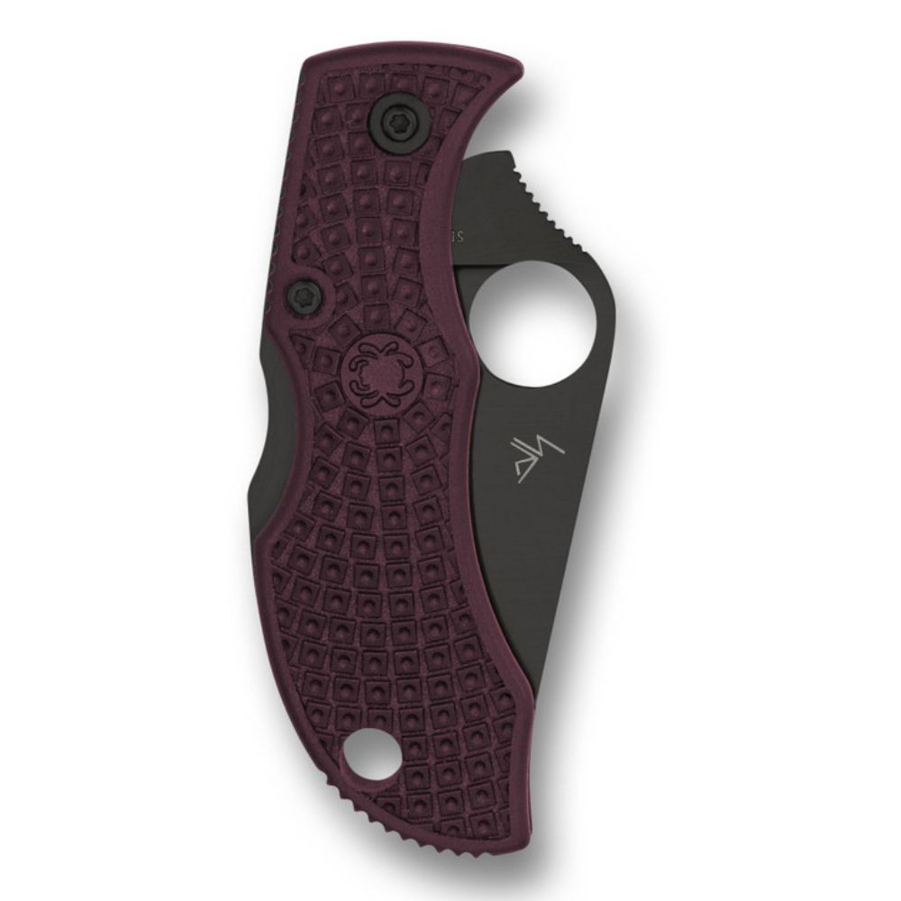 Elevating this premium Manbug's distinction, its blade features a non-reflective titanium carbonitride (TiCN) coating, while its fiberglass-reinforced-nylon (FRN) handle is precision injection molded in a rich crimson hue. Complementing this striking crimson-and-black theme, its lock bar and hardware are also adorned with robust black finishes.