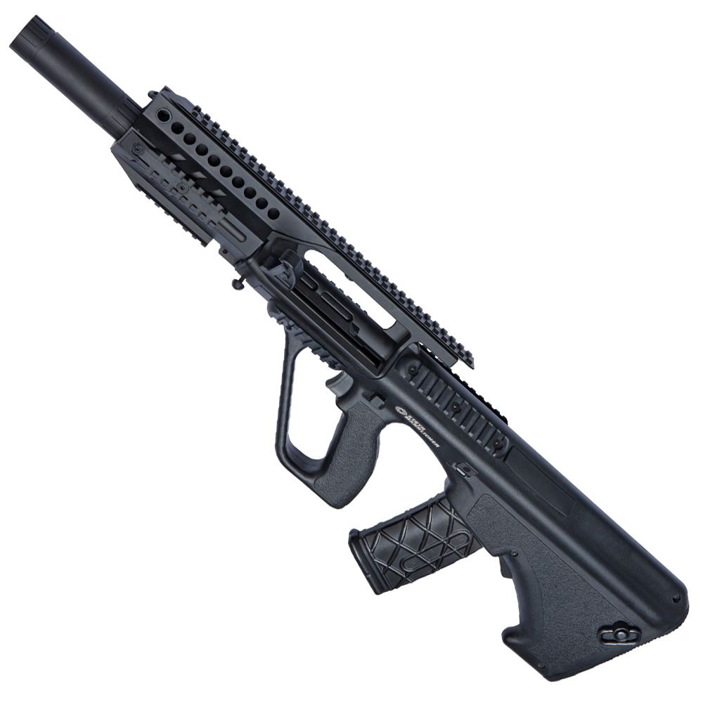 This Proline Steyr AUG A3 MP (Multi Purpose) is a specialized version of the famed Austrian firearm with many refinements and enhancements compared to our Sportline guns. Most noticeable is the many rail mounted on different parts of the Airsoft gun. A total of 9 rails are present of which 7 is removable allowing the operator to only mount the rails needed saving on weight and keeps the gun looking stylish. Internally is a version 3 gearbox with 7mm bearings and high quality gears and piston. The gearbox has a quick change spring feature that allows for a fast change in muzzle velocity should the circumstances demand it. The gun shoots 120 m/s (394 fps) out of the box and can be upgraded with ULTIMATE parts if desired. The AUG A3 MP is a compact Airsoft weapon with a full length barrel (530mm) giving long range rifle accuracy in a CQB sized gun, making this Steyr AUG the ideal multi mission Airsoft gun.