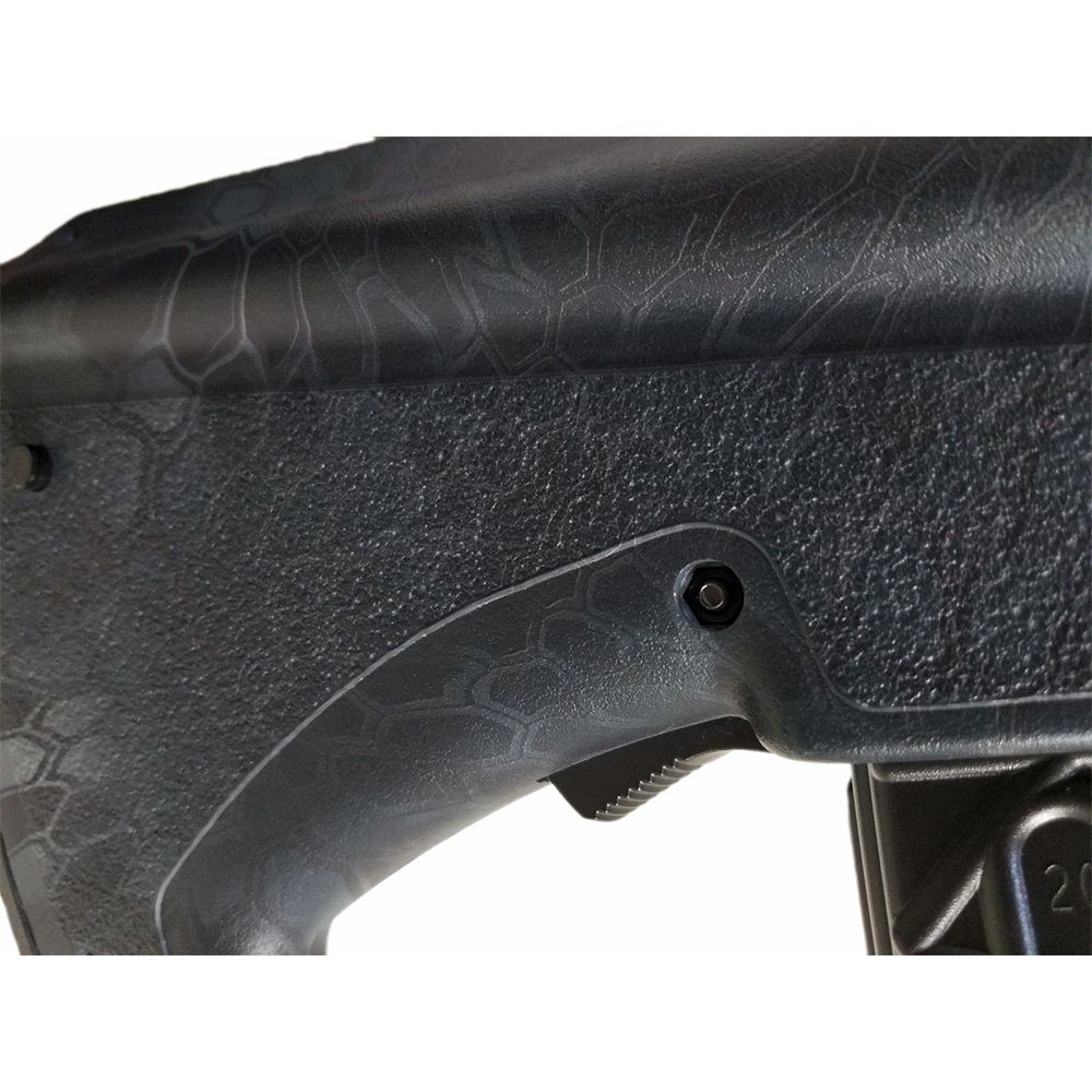 The Steyr AUG A3 XS Commando AEG Airsoft Rifle is a small but powerful electric rifle designed to pack a serious punch on the airsoft field. The fully ambidextrous bullpup airgun shoots 6mm airsoft BBs out at up to 400 FPS and comes with an adjustable hop-up system, V3 metal gearbox, and 7 accessory rails (5 are removable) for attaching a scope or laser. Overall weight is 3.4 kg (7.5 lb).