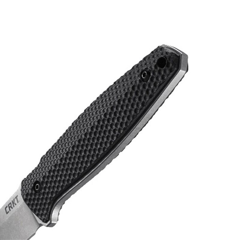 The Strafe™ tactical fixed blade is born of both an admiration for sleek Japanese designs and a fascination with U.S. military combat blades. The blade shape is influenced by a classic drop-style and the slight design makes this knife swift in motion and extremely lightweight to carry. The field is full of unsuspected variables; the Strafe™ is built to address every last one.Lucas Burnley of Orleans, Massachusetts built the Strafe to be the ultimate modern field knife with traditional, classic undertones. It’s first and foremost a field utility knife, but it’ll always be there to run sweep. When matched with diamond cross section grip and shadow boxed scales, it looks like a relic fit for a display case, but this is a powerful and capable beast that doesn’t belong in a cage. The tough polypropylene sheath features a j-hook accessory so it remains poised and at the ready at all times.In a combat situation, every second counts. The sleek, swift Strafe eats milliseconds for breakfast.