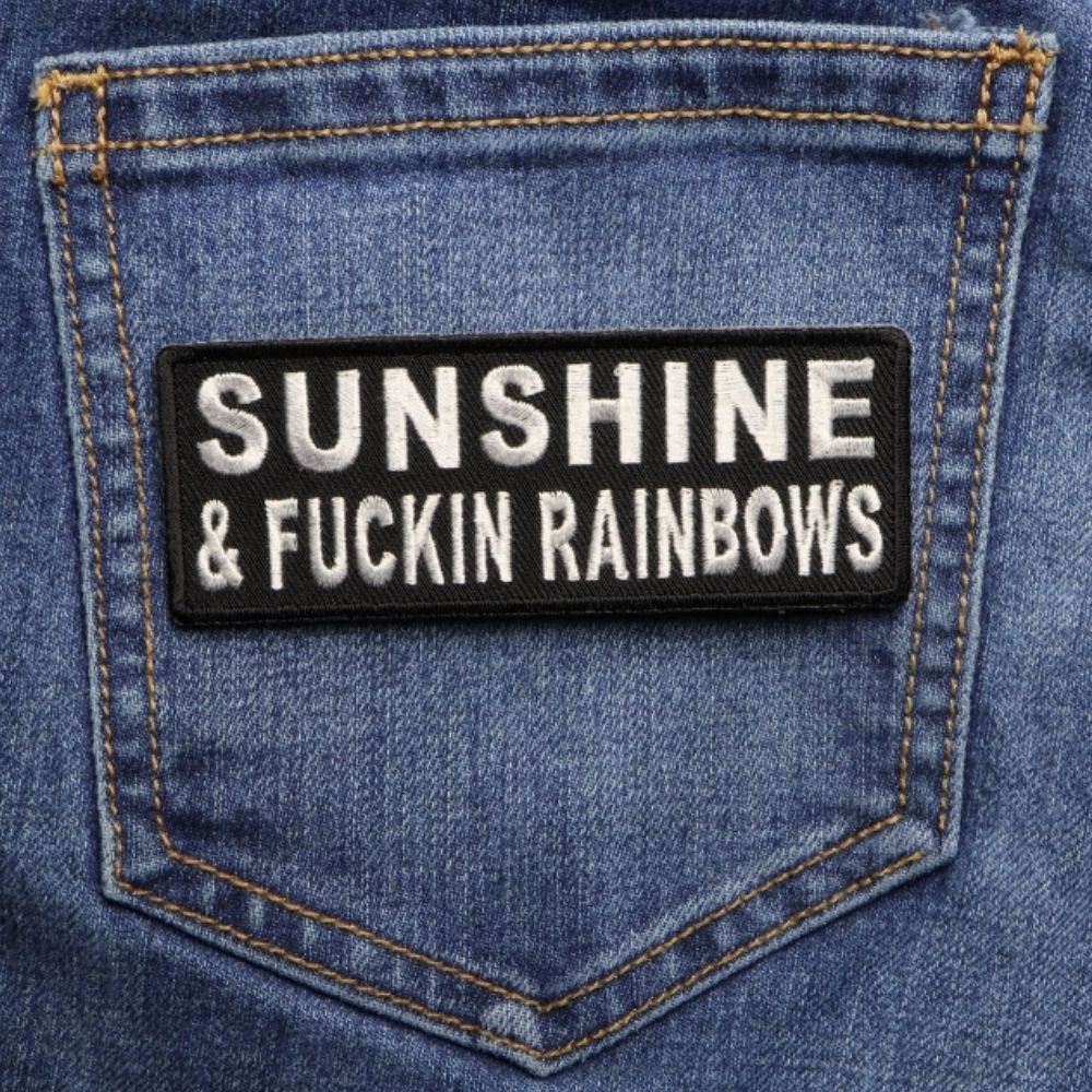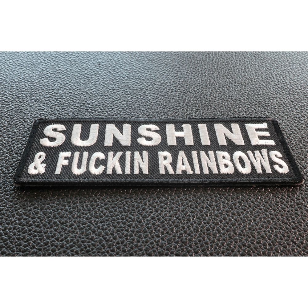 Light Up Your Style With The Sunshine And Fuckin Rainbows Patch! This Eye-Catching Patch Measures 4x1.5 Inches And Is Embroidered In Classic Black / White. It Can Be Easily Sewn Or Ironed On To A Variety Of Clothing Items, Including Denim And Leather Jackets, Vests, Hats, Backpacks, And Shirts. Enjoy The Quality Plastic Backing And Sleek Embroidered Die Cut Borders For A Polished Finish.