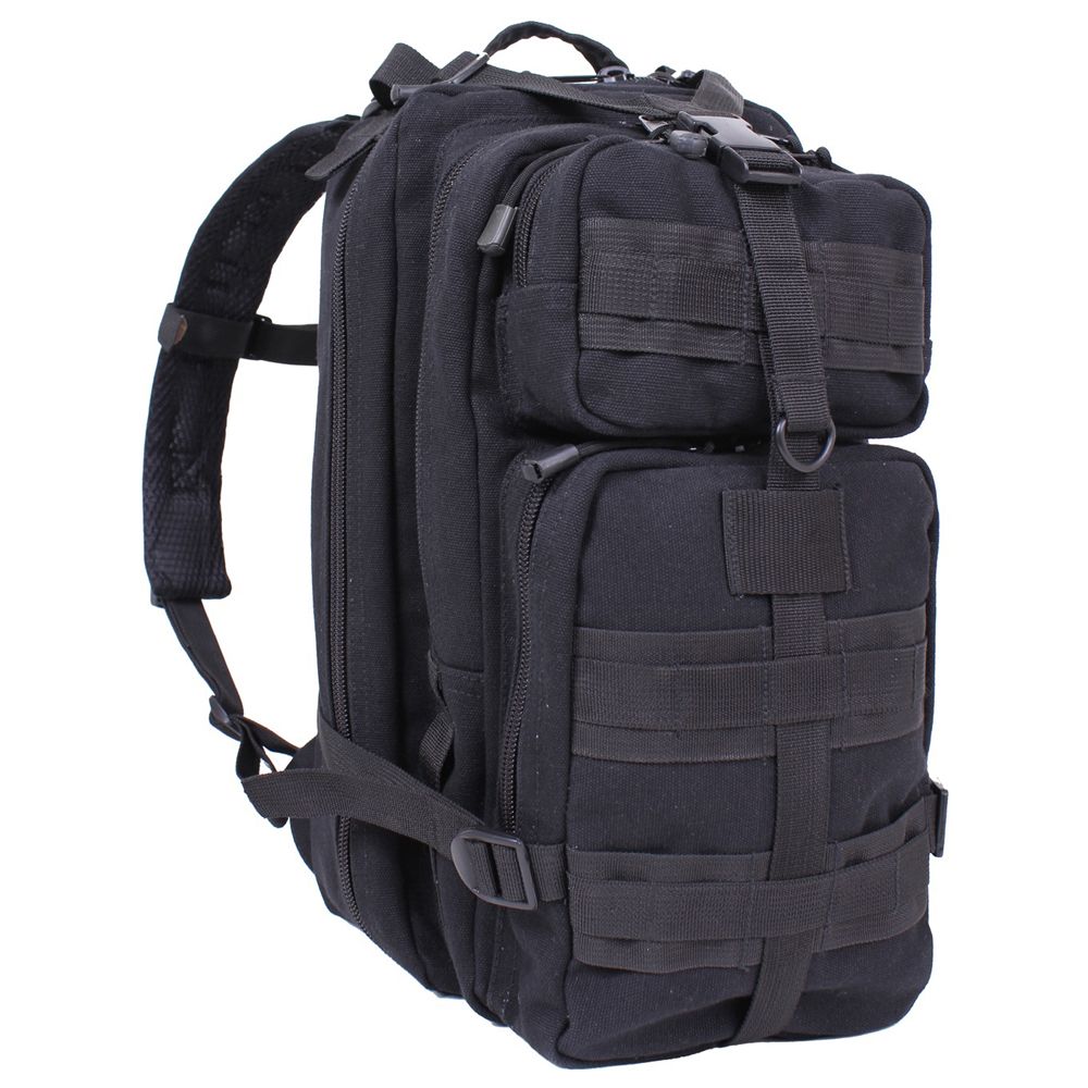 Tacti Canvas Go Pack combines the tactical elements of our Medium Transport Packs but with a classic military canvas material. The pack features a heavy weight canvas with polyester web straps. The bag has one large main zippered compartment w/a large interior mesh pocket, great for storing everything from books to essential survival supplies. There are also 3 additional zippered compartments, which make for great storage as well. The adjustable padded shoulder straps and padded back with breathable mesh backing make the pack ideal for heavy and or long trips. In addition the bag has a top carry handle, top Y-Shaped adjustable quick release cinch strap and side cinch straps.