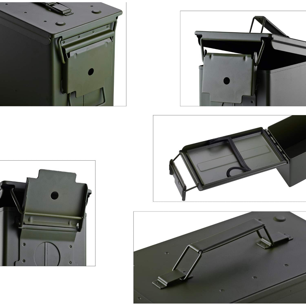 Organize and Preserve your Ammo: Tactical45 Black Ammo Cans Metal Bullet Case - 1 Pack Ammo Storage Box is designed to store and protect your ammo from water, dirt, debris, and other elements. Extend your Ammunitions Life Expectancy: Each ammo case field box features an airtight rubber gasket seal around the rim to ensure the contents of your ammo storage containers are secure; Front latch can be locked for added protection. Perfect Size for Your Needs: The 11.25 x 5.8-inch (28.6 x 14.7cm) steel metal box has a 6.8-inch (17.3cm) depth that provides ample room for storing your .50 caliber ammunition or other valuable items. Store your Ammo and More: While designed to keep your ammo safe, this empty ammo box can also store hunting gear, fishing tackle, electronics, personal treasures, sewing equipment, and specialty tools