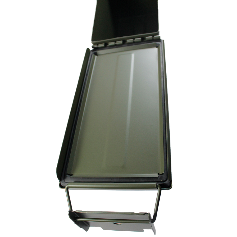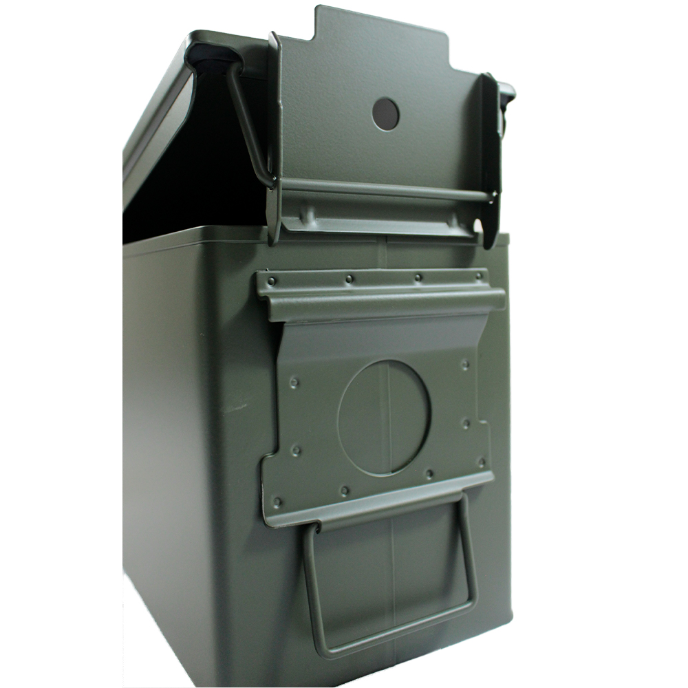Pro Tips: Store the ammo crate utility box in a cool area and out of moisture to prevent ammunition from oxidizing which degrades the velocity of the round; The Ammo holder can is indented to accept the folding handle on the lid of your other ammo containers.