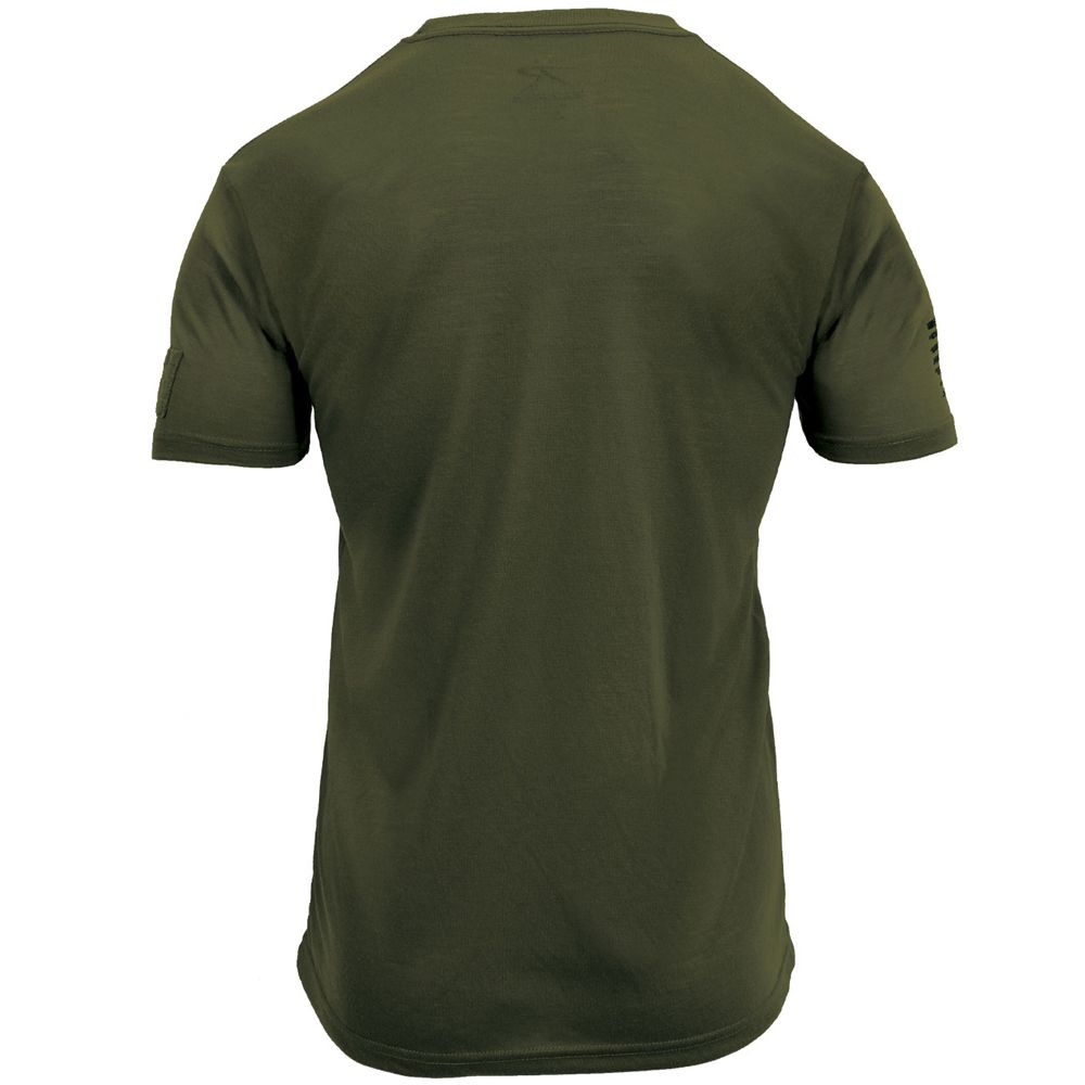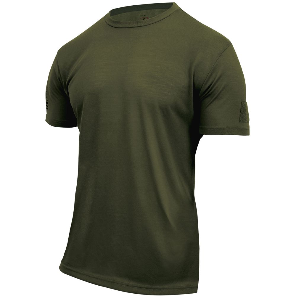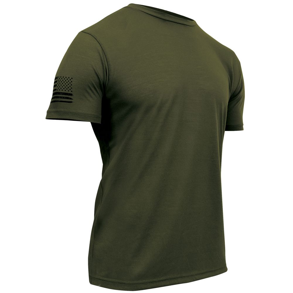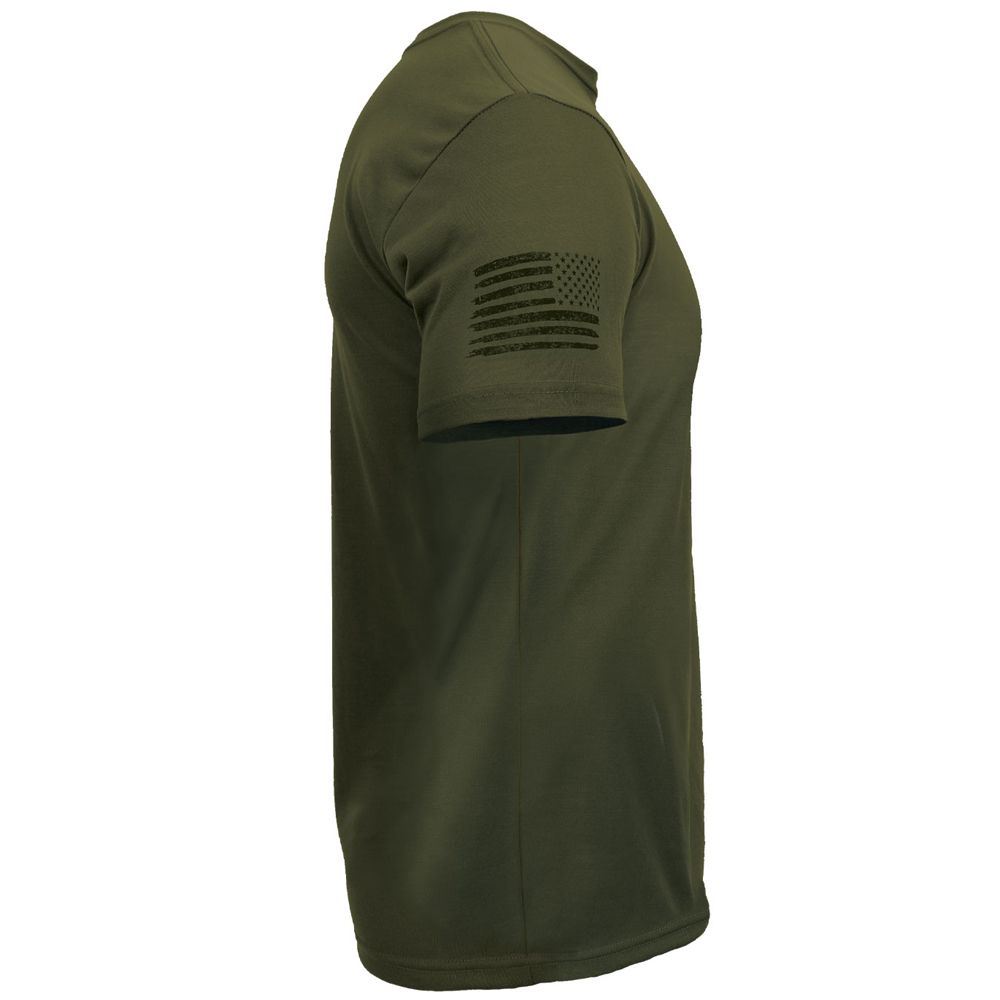 Tactical Athletic Fit T-Shirt is a durable, yet comfortable moisture wicking tee that features a slightly smaller chest, armholes, and sleeve opening for an athletic fit and style. The tactical shirt includes a 3.5" x 2.36" loop field for morale patches and loop branches on the wearers left sleeve and a reverse distressed US Flag on the right sleeve. Tagless label, inset collar and 100% cotton ring spun material for all-day comfort.