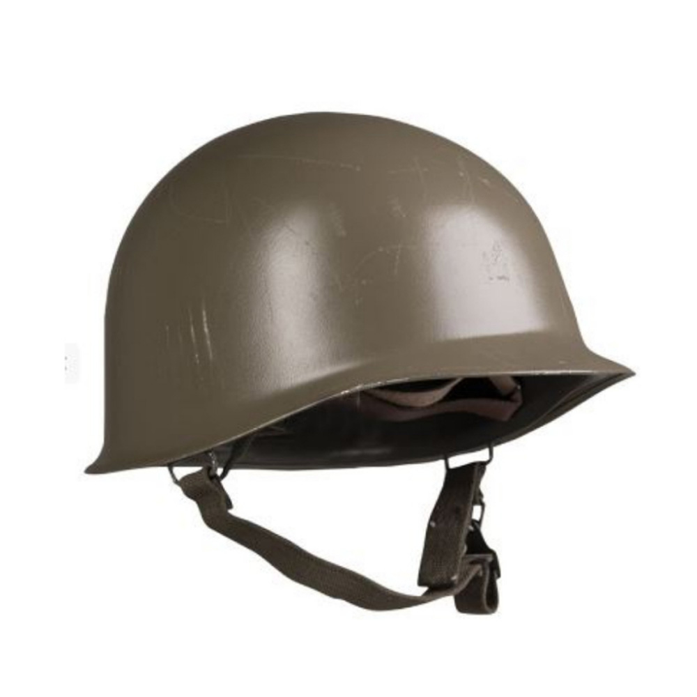 An Austrian Bundesheer variation of the iconic US M1 helmet. Helmets of this design were used from WWII through to the late '80's by many NATO countries. These Austrian steel pots are dated from 1970-80 and include a liner. The shell retains the typical M1 shape with a steel construction, painted in olive drab. Austrian M1 liners differ slightly, featuring a tongued leather pad with two wide canvas suspension straps underneath. A must-have for a military headwear collection or reenactments.