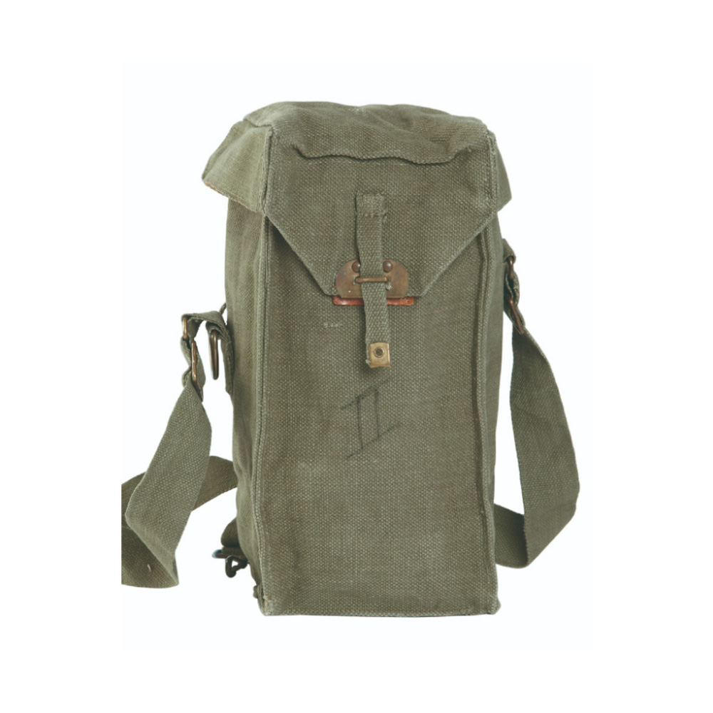 The Tactical Belgium OD Gas Mask Bag Used is a rugged and reliable carrying solution originally issued by the Belgian Army. Designed to store and transport gas masks securely, this used surplus bag is built from heavy-duty canvas material, offering long-lasting durability for tactical and outdoor use. Measuring approximately 12 x 5 x 5 inches, the compact design is ideal for carrying essential gear. The bag features an adjustable shoulder strap and two metal D-rings, allowing for multiple carry options. Whether you’re collecting surplus or need dependable gear storage, this tactical bag delivers practical utility and authentic military style.