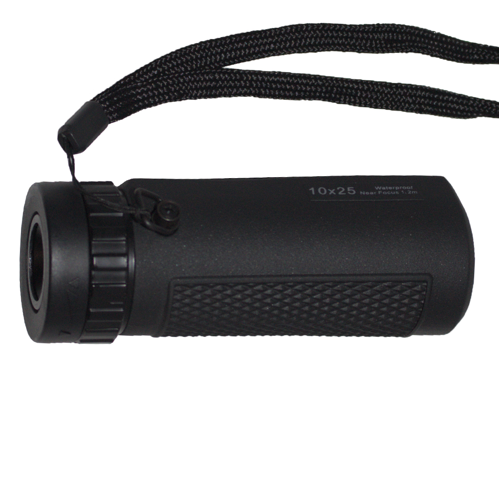 Don't leave home without the lightweight, compact, and ergonomic 10x25 WP Blackhawk Monocular. With bright and clear multi-coated optics, a wide 6.3° field of view, and a 10x magnification, this monocular can become a good companion for a variety of activities and hobbies, from birdwatching to urban exploration. Weighing only five ounces, it will not add much weight to your hiking gear, briefcase, or a purse. The waterproof and fogproof ABS plastic housing is suited well for most weather conditions and will protect the optics even if you get it wet or drop it in a puddle. For a comfortable and non-slip grip, it offers textured rubberized armoring. Other highlights of this handy optic include a 13' close focus and an 11mm eye relief. The monocular ships in clamshell packaging and includes a carry case, a wrist strap, a lens cloth, and lens covers.