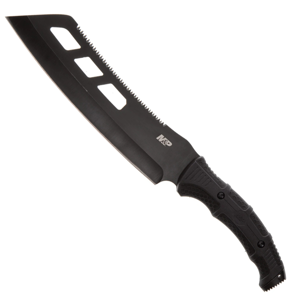 Sporting a strong 420 stainless steel blade with full-tang construction, this rugged machete is perfectly balanced for reliable performance. The sawback design allows you to cut through tough vegetation with ease, while the over-molded rubber handle offers a comfortable, non-slip grip. Plus, this machete features a fabric sheath for safe, convenient carry.